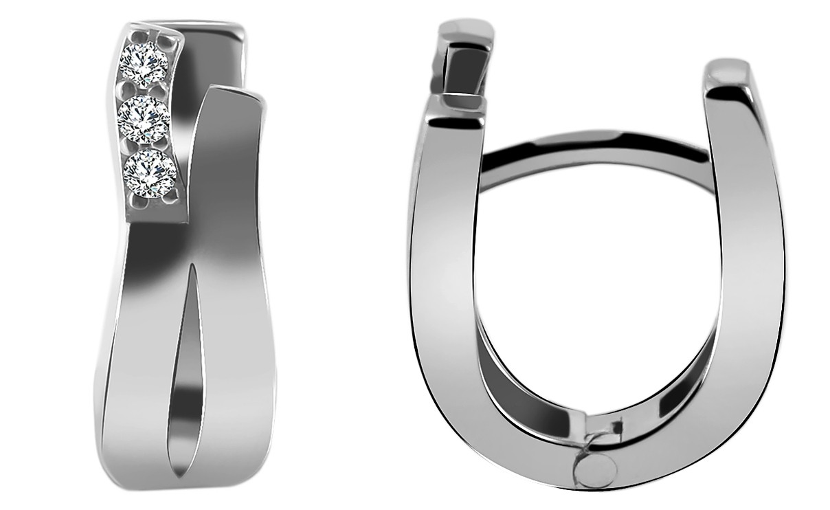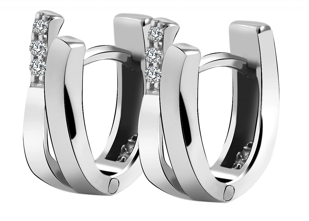 Os brincos de argola dobráveis femininos em forma de U são feitos de prata esterlina 925. Todos os brincos são banhados a ródio. Isso significa que eles são cobertos com uma camada de metal precioso de alta qualidade que protege a joia de manchas. Além disso, o ródio realça o tom prateado e confere brilho perfeito. O acabamento da superfície é mate e polido. As três pedras de zircônia, habilmente apresentadas, acrescentam ainda mais brilho. Este par de brincos impressiona pelo design sofisticado de dois acabamentos de superfície diferentes e pelas formas curvas. Os brincos de argola são fechados com um mecanismo de dobramento simples que pode ser operado facilmente e garante uma fixação segura no orifício da orelha. As dimensões resultam de um comprimento de 15 mm, largura de 6 mm e espessura do material de 2 mm.