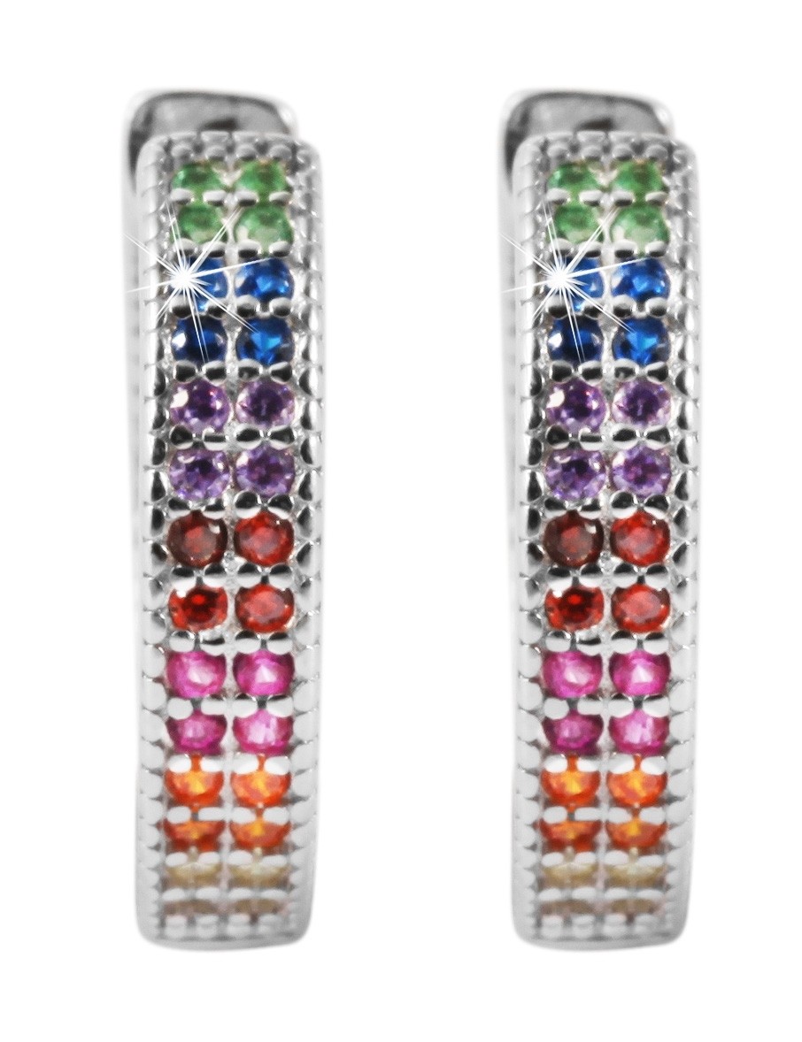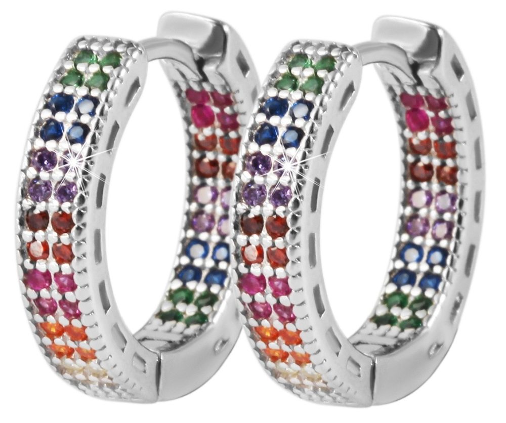 Os brincos de argola dobráveis femininos são feitos de prata esterlina 925 e adicionalmente banhados a ródio. Este revestimento de ródio de alta qualidade refina o material, protege-o de manchas e também garante brilho duradouro. As 96 pedras cintilantes de zircônia, que cobrem completamente os brincos de argola, também possuem brilho radiante. O fecho é dobrável que garante fácil colocação e retirada. O tamanho resulta de um diâmetro de 10 mm, largura de 3 mm e espessura de 2 mm. Com estes brincos não passará despercebido e são um óptimo acessório para qualquer ocasião.