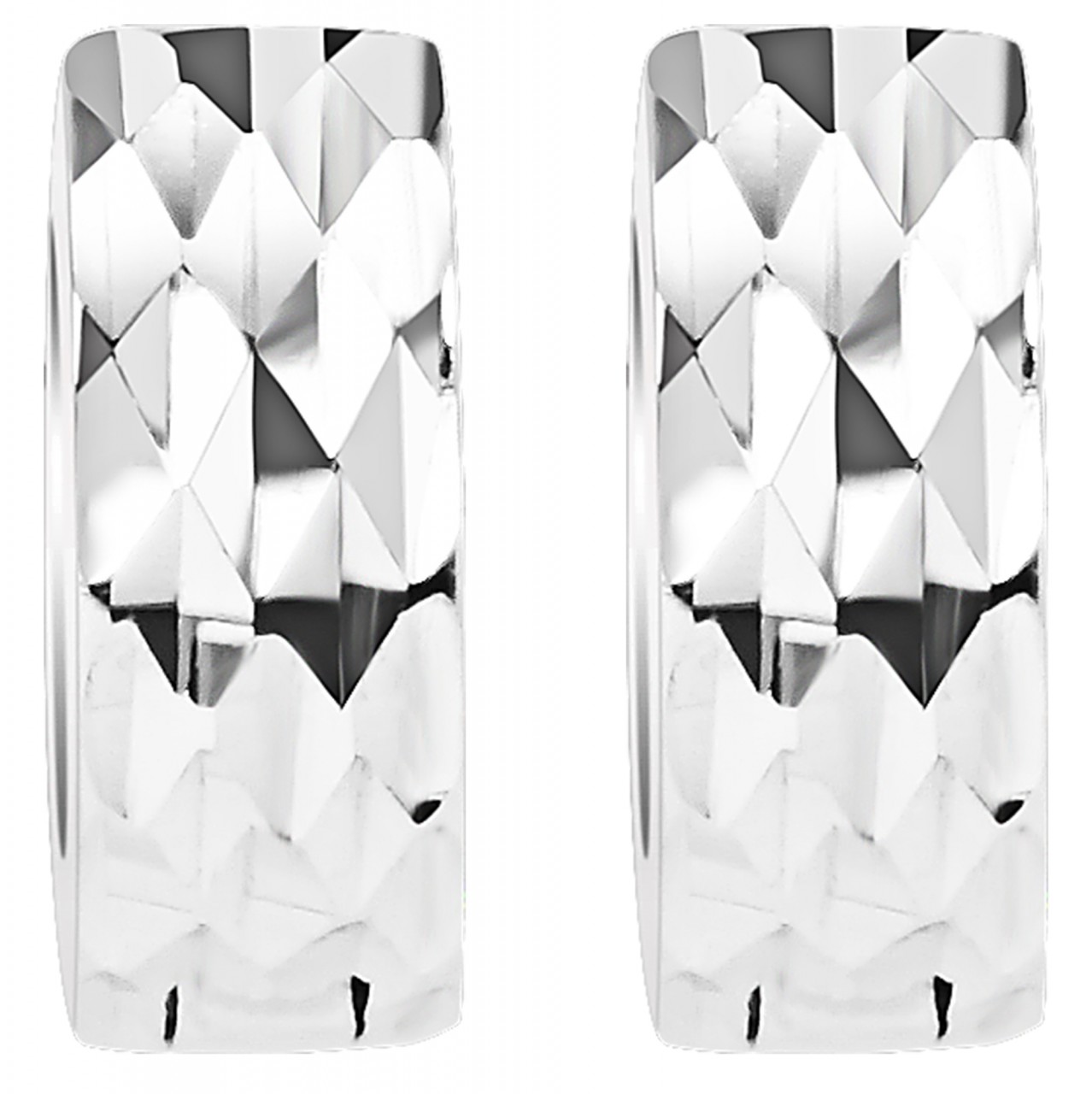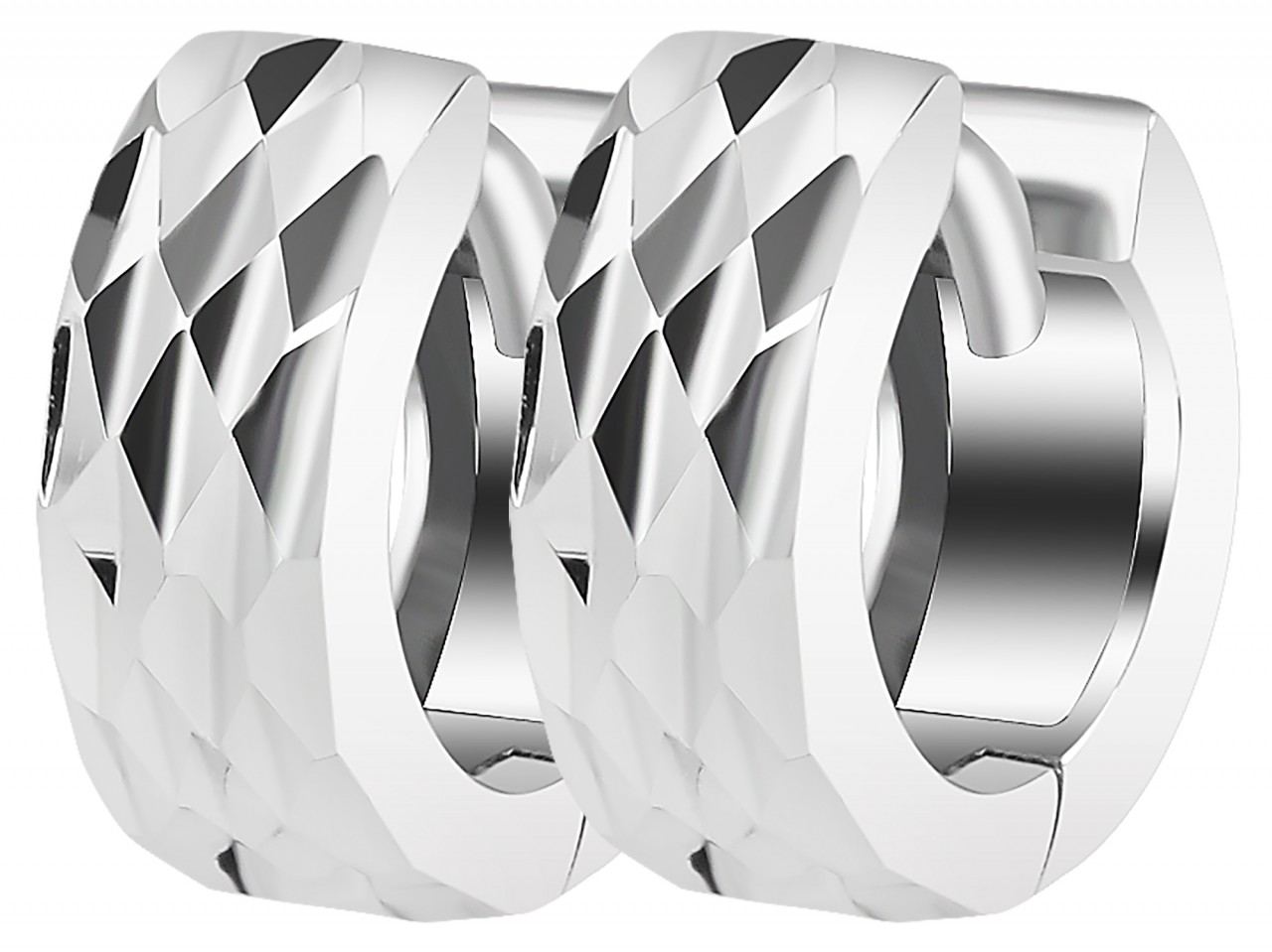 Os brincos de argola dobráveis femininos são feitos de prata esterlina 925, banhados a ródio. Isso significa que eles são cobertos com uma camada de metal precioso de alta qualidade que protege a joia de manchas. Além disso, o ródio realça o tom dourado e confere brilho perfeito. As incorporações sutis na frente dos brincos de argola realçam a aparência desses brincos elegantes e os tornam um recurso especial com detalhes detalhados. Os brincos de argola são fechados com um mecanismo de dobramento simples que pode ser operado facilmente e garante uma fixação segura no orifício da orelha. As dimensões resultam de um diâmetro de 8 mm, largura de 4 mm e espessura de 2 mm. Com estes brincos você obtém um atrativo atemporal que irá desfrutar por muito tempo.