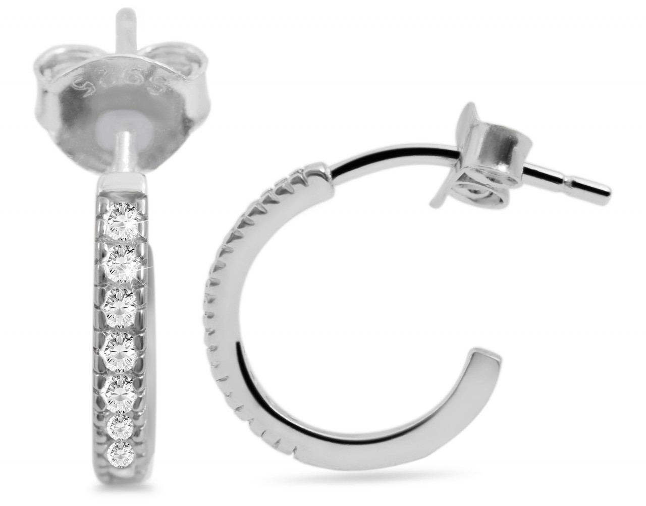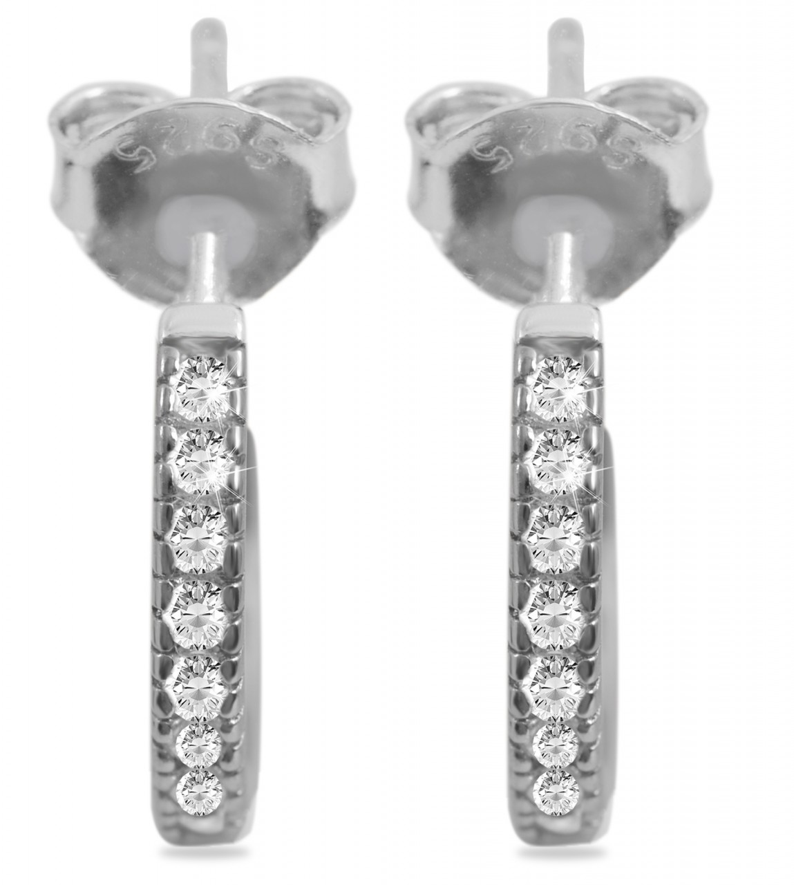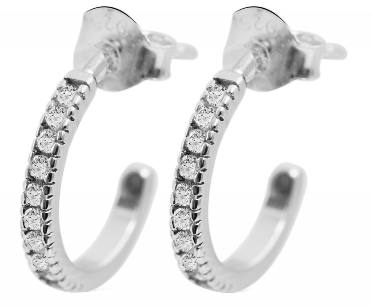 Os brincos, em forma de meia argola, são feitos em prata de lei 925 e adicionalmente banhados a ródio. Esse revestimento de alta qualidade refina o material, protege-o de manchas e também garante que a joia tenha brilho duradouro. Os brincos semicirculares são totalmente incrustados com dez pedras de zircônia. Eles são atemporais e ao mesmo tempo exalam um charme elegante. Os brincos são fechados com um prático parafuso borboleta, o que garante que sejam confortáveis e fáceis de colocar e tirar e garantem uma fixação segura. O tamanho dos brincos é de 12 mm de comprimento, 2 mm de largura e 1,5 mm de espessura.