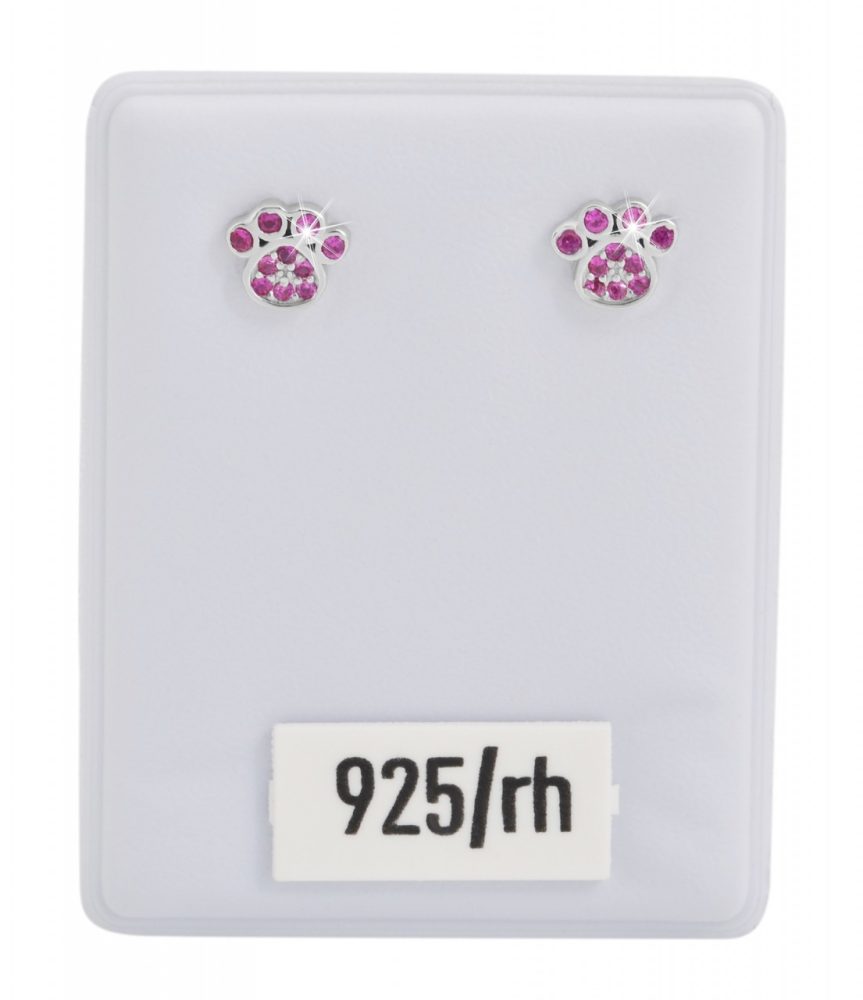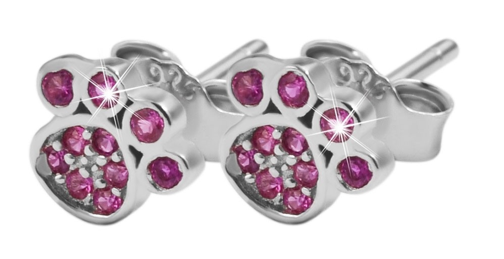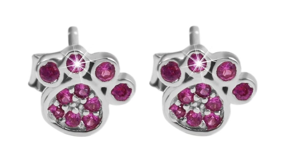 Os lindos brincos infantis em forma de pequenas patas são feitos de prata esterlina 925 e adicionalmente refinados com um revestimento de ródio. Esta camada protege o material da oxidação e confere-lhe um brilho intenso. As pequenas patas do cachorro são totalmente decoradas com dez pedras de zircônia. Os brincos podem ser presos na parte de trás do orifício da orelha com um parafuso borboleta, que também é feito de prata verdadeira. O tamanho resulta de um comprimento de 5,5 mm, largura de 6 mm e espessura de 1 mm.