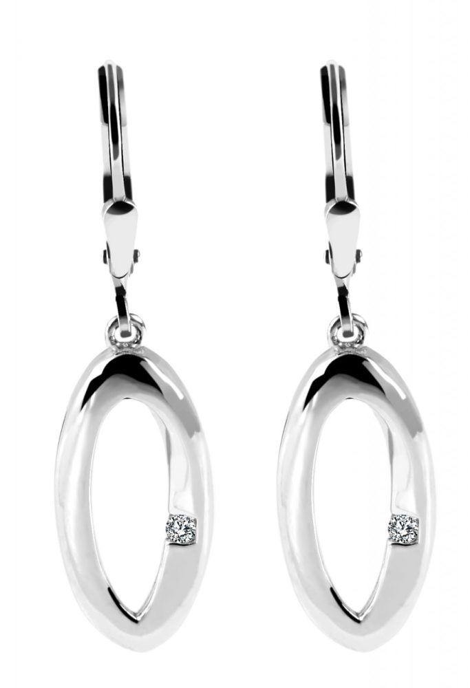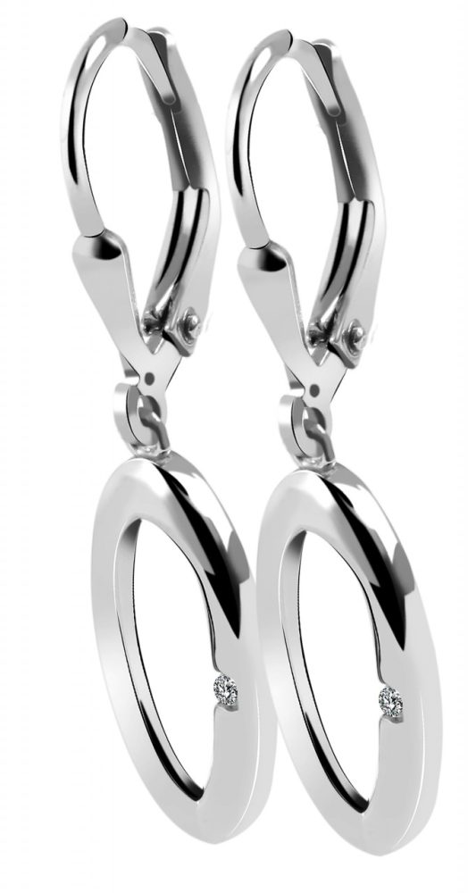Os elegantes pingentes de orelha para mulheres são feitos de prata esterlina 925. Todos os brincos são banhados a ródio. Isso significa que eles são cobertos com uma camada de metal precioso de alta qualidade que protege a joia de manchas. Além disso, o ródio realça o tom prateado e confere brilho perfeito. Os pingentes de 18 mm de comprimento, 9 mm de largura e 2 mm de espessura são fixados a um ilhó para que balancem elegantemente a cada movimento. O ilhó é preso ao fecho, que consiste em um gancho e um prático fecho dobrável. Este fecho articulado evita que os brincos caiam e é fácil de usar. O visual dos pingentes de orelha é brilhante e decorado com uma pedra de zircônia na borda do brinco. Têm formato oval e abertura no interior.