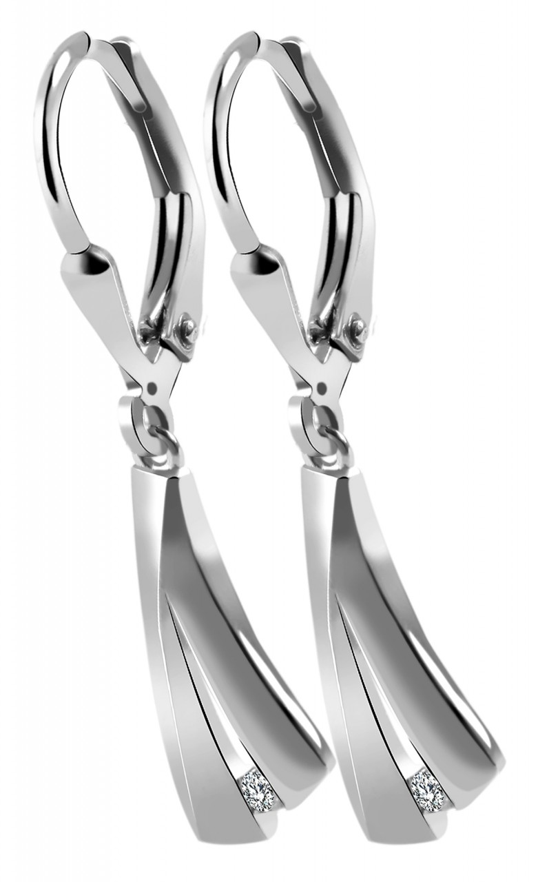 Os elegantes pingentes de orelha para mulheres são feitos de prata esterlina 925. Todos os brincos são banhados a ródio. Isso significa que eles são cobertos com uma camada de metal precioso de alta qualidade que protege a joia de manchas. Além disso, o ródio realça o tom prateado e confere brilho perfeito. Os pingentes de 17 mm de comprimento, 8 mm de largura e 3 mm de espessura são fixados a um ilhó para que balancem elegantemente a cada movimento. O ilhó é preso ao fecho, que consiste em um gancho e um prático fecho dobrável. Este fecho articulado evita que os brincos caiam e é fácil de usar. O visual dos pingentes de orelha é brilhante e decorado com pedra de zircônia. Eles ficam mais largos na parte inferior e envolvem uma pedra de 2 mm.