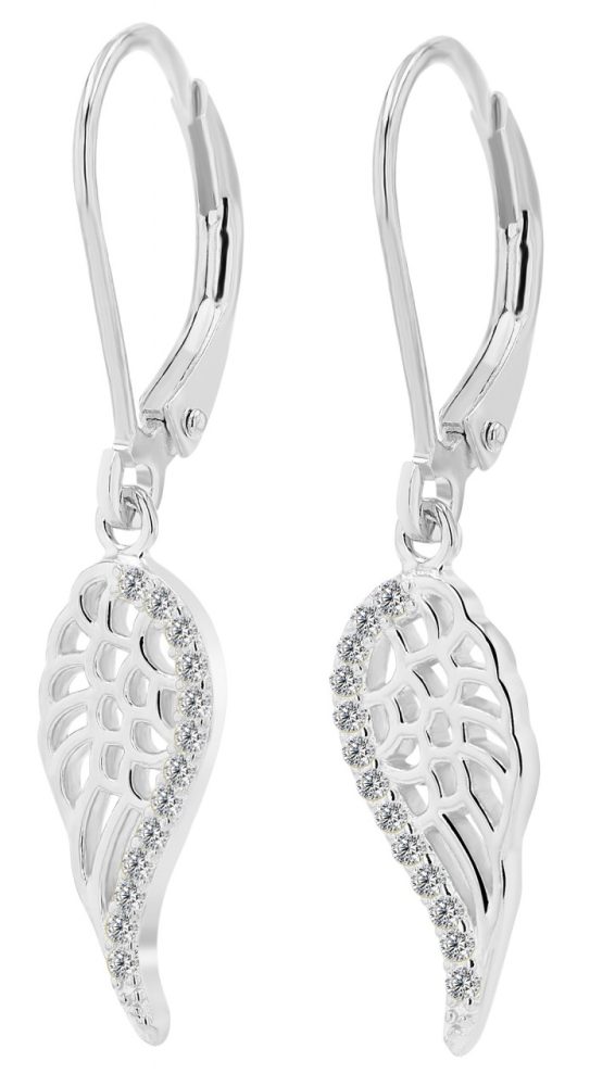 Os brincos em forma de asa são fabricados em prata de lei 925. A bijuteria está disponível em versão dourada ou ródio. O banho de ródio protege os brincos do embaciamento e dá-lhes um brilho radiante, enquanto o tom de ouro quente confere às jóias uma elegância especial. Cada brinco é adornado com 13 pedras de zircônio, que criam um design exclusivo. Os brincos medem 30 x 5,5 x 1,5 mm.