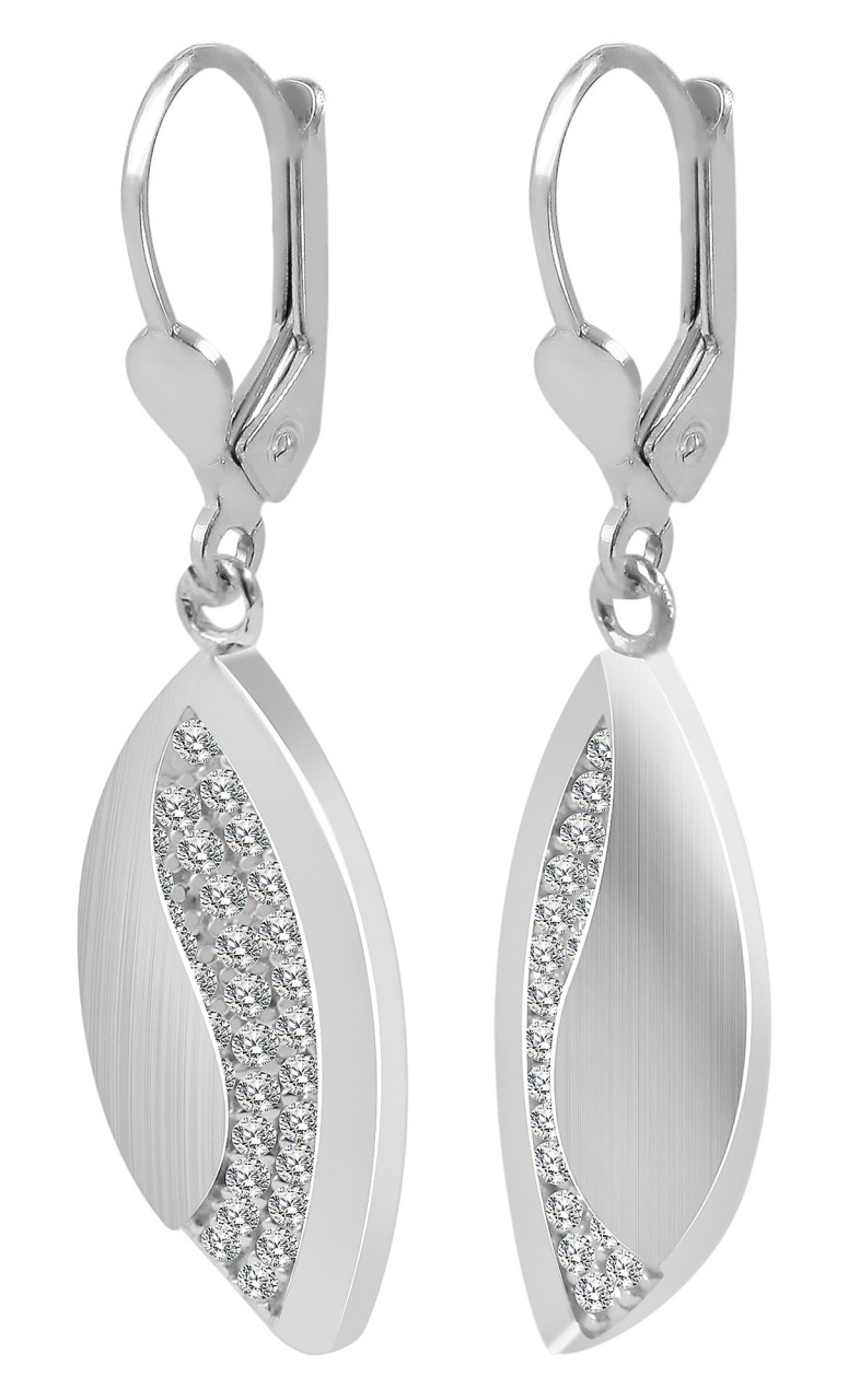 Os brincos são feitos de prata esterlina 925 e adicionalmente banhados a ródio. O revestimento de ródio de alta qualidade evita que as joias manchem e realça o tom prateado. Os brincos têm design elegante, acabamento superficial fosco e polido e são decorados com brilhantes pedras de zircônia. Eles são fechados com um prático fecho de gancho que pode ser operado facilmente e impossibilita a abertura por conta própria. O tamanho resulta de um comprimento de 37 mm, largura de 7 mm e espessura de 3,5 mm. O design elegante e atemporal destes brincos encanta jovens e idosos e embeleza qualquer usuário.