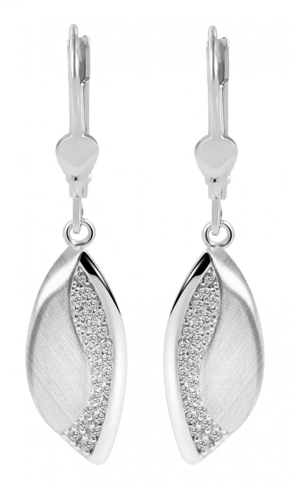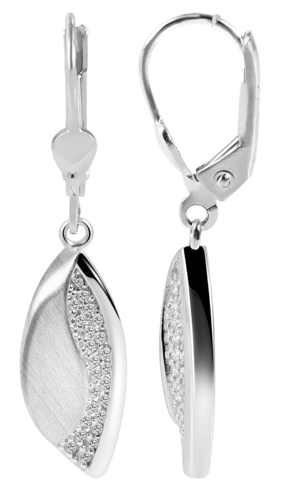 Os brincos são feitos de prata esterlina 925 e adicionalmente banhados a ródio. O revestimento de ródio de alta qualidade evita que as joias manchem e realça o tom prateado. Os brincos têm design elegante, acabamento superficial fosco e polido e são decorados com brilhantes pedras de zircônia. Eles são fechados com um prático fecho de gancho que pode ser operado facilmente e impossibilita a abertura por conta própria. O tamanho resulta de um comprimento de 37 mm, largura de 7 mm e espessura de 3,5 mm. O design elegante e atemporal destes brincos encanta jovens e idosos e embeleza qualquer usuário.