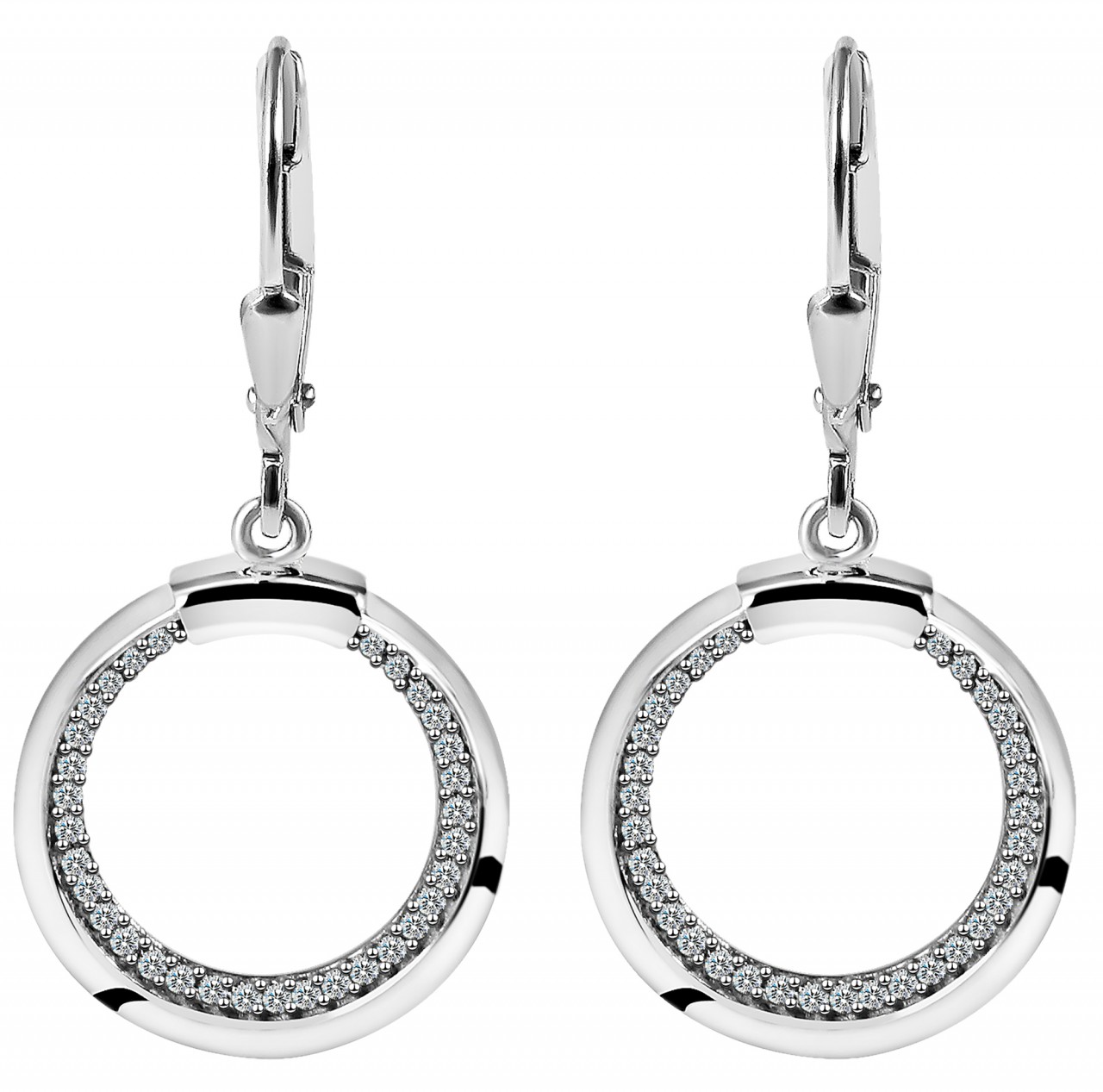 Os brincos redondos são feitos de prata esterlina 925 e adicionalmente banhados a ródio. O revestimento de ródio de alta qualidade evita que as joias manchem e realça o tom prateado. Os brincos têm design atemporal e brilham com acabamento superficial altamente polido. Os brincos são abertos no meio e decorados com pedras brilhantes de zircônia na borda interna do círculo. Eles adicionam mais brilho e dão um toque elegante. Eles são…