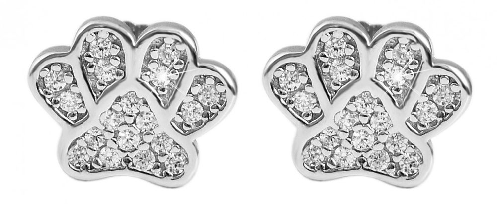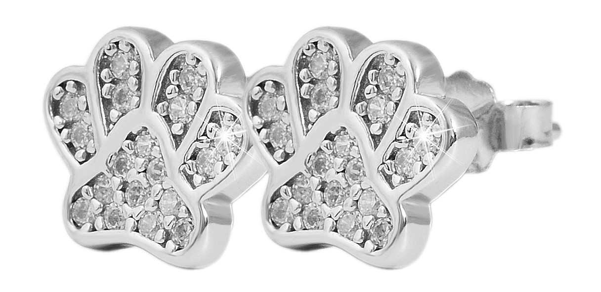 Os lindos brincos em forma de pequenas patas de cachorro são feitos de prata esterlina 925 e adicionalmente banhados a ródio. O revestimento de alta qualidade protege a joia de manchas e garante um brilho intenso. As patinhas são totalmente decoradas com 18 pedras de zircônia cada. Um parafuso borboleta, que também é feito de prata verdadeira, garante que os plugues fiquem bem presos no orifício da orelha. O tamanho resulta de um comprimento de 8 mm, largura de 10 mm e espessura de 2 mm. Estes brincos divertidos garantem brilho nos olhos de todas as crianças e fazem o coração de todas as meninas bater mais rápido.