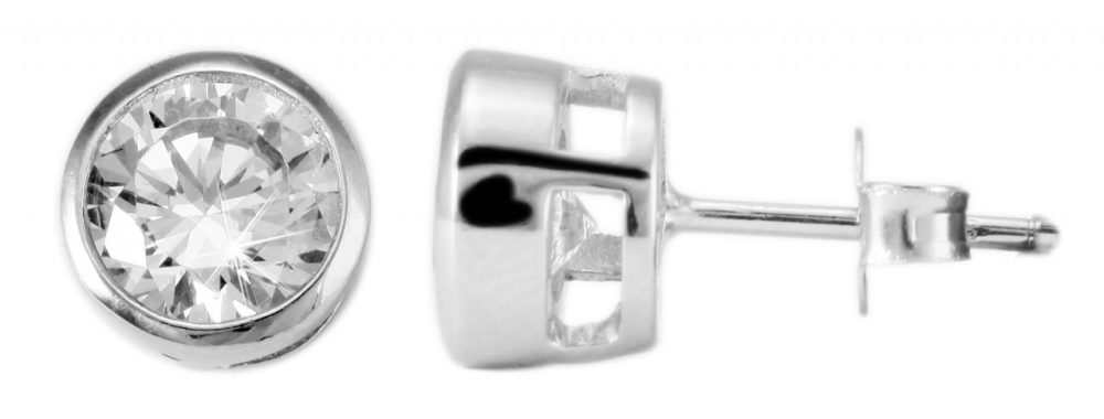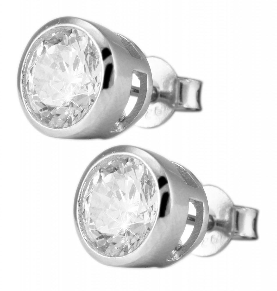 Os elegantes brincos consistem em uma pedra de zircônia brilhante em uma moldura e foram feitos de prata esterlina 925. Os brincos podem ser fixados na parte de trás do orifício da orelha com um parafuso borboleta feito de prata verdadeira. Os brincos estão disponíveis em diferentes tamanhos. Eles marcam presença no dia a dia e podem ser combinados em todas as ocasiões.
