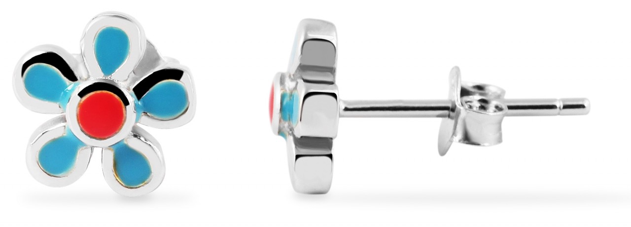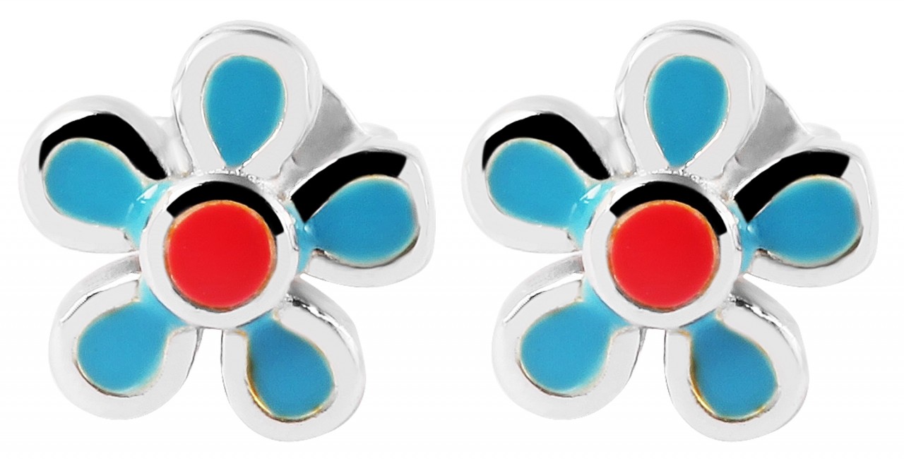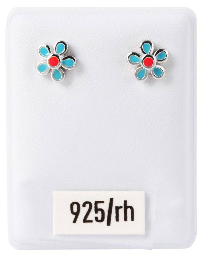 Os brincos florais em forma de pequenas flores são feitos de prata esterlina 925 e adicionalmente banhados a ródio. O revestimento protege a joia de manchas e garante um brilho brilhante e radiante ao material. Graças ao esmalte, as flores brilham em cores diferentes, o que confere aos lindos brincos um aspecto infantil e meigo. Os brincos podem ser fixados no orifício da orelha com um parafuso borboleta feito de prata verdadeira. O tamanho resulta de um diâmetro de 7,5 mm e uma espessura de 3 mm.