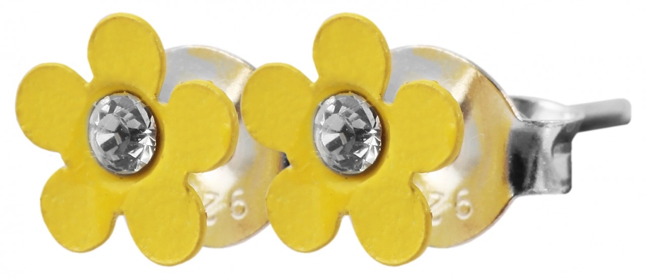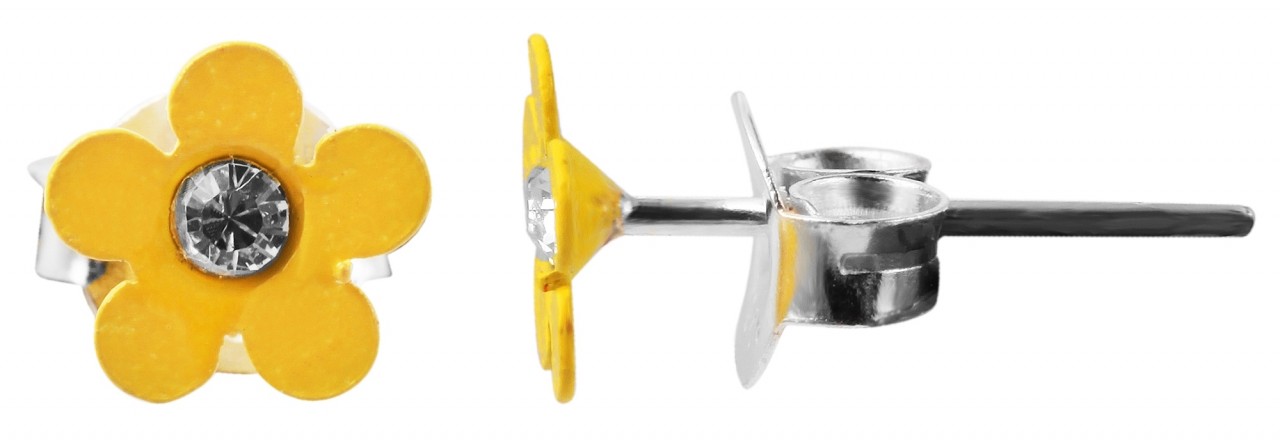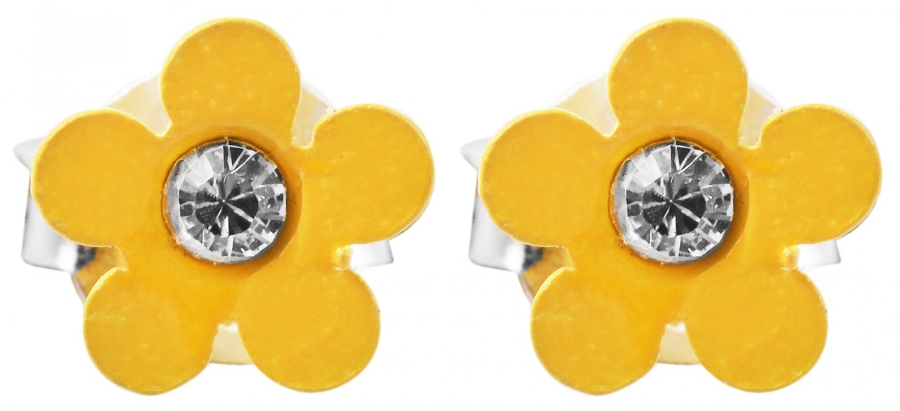 Os lindos brincos infantis em formato de pequenas flores são feitos de prata esterlina 925 e revestidos com tinta epóxi. Uma pedra brilhante de similite é habilmente colocada no meio, completando o design. Os brincos podem ser fechados com um parafuso borboleta de prata verdadeira, que evita que caiam e podem ser colocados e retirados com facilidade. As dimensões dos brincos são 5,5 mm de diâmetro e 0,5 mm de espessura. Estes brincos femininos são pequenos, mas lindos e chamam a atenção.