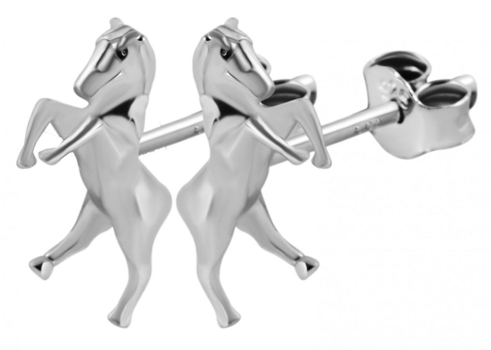 Os brincos femininos em forma de cavalo são feitos de prata esterlina 925 e adicionalmente banhados a ródio. O revestimento de ródio protege o material contra manchas e garante um brilho particularmente duradouro. Os brincos cuidadosamente elaborados são um ótimo acessório para todos os amantes de cavalos e meninas. Os brincos podem ser fixados ao orifício da orelha com um parafuso borboleta, evitando assim que caiam. O tamanho resulta de um comprimento de 7 mm, largura de 9 mm e espessura de 3 mm.