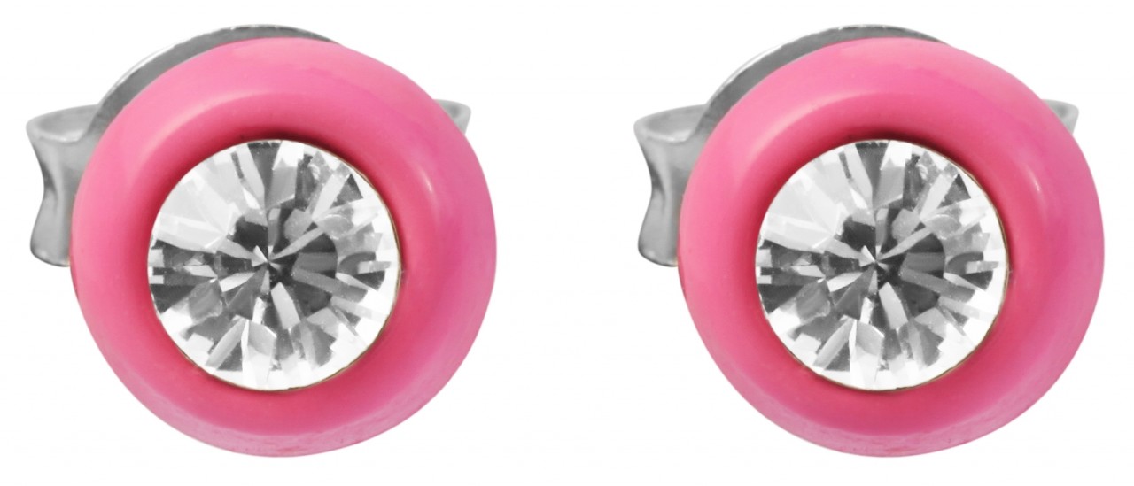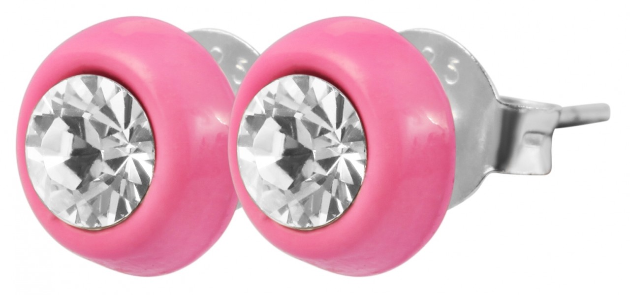 Os lindos brincos infantis em formato redondo são feitos de prata esterlina 925 e revestidos com tinta epóxi. Uma pedra brilhante de similite é habilmente colocada no meio, completando o design. Os brincos podem ser fechados com um parafuso borboleta de prata verdadeira, que evita que caiam e podem ser colocados e retirados com facilidade. As dimensões dos brincos são 5 mm de diâmetro e 2 mm de espessura.