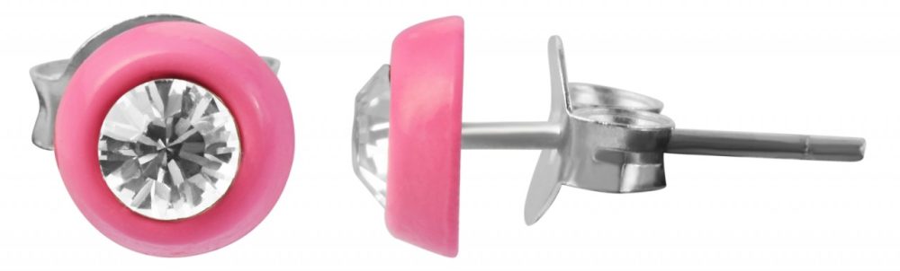 Os lindos brincos infantis em formato redondo são feitos de prata esterlina 925 e revestidos com tinta epóxi. Uma pedra brilhante de similite é habilmente colocada no meio, completando o design. Os brincos podem ser fechados com um parafuso borboleta de prata verdadeira, que evita que caiam e podem ser colocados e retirados com facilidade. As dimensões dos brincos são 5 mm de diâmetro e 2 mm de espessura.