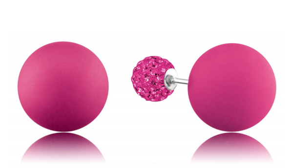 A pequena pérola é brilhantemente incrustada com muitas pedras de cristal de cor Fuchsia