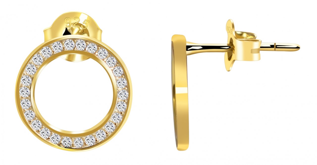 Os brincos redondos com acabamento em zircônia são feitos de prata esterlina 925. Eles impressionam pelo seu design sutil, mas moderno, e sublinham a individualidade de cada usuário. Os brincos podem ser presos ao orifício da orelha com um parafuso borboleta, que também é feito de prata esterlina, garantindo que sejam confortáveis ​​de usar. Os brincos têm diâmetro de 11 mm e espessura do material de 1 mm. Este produto é entregue em um cartão decorativo branco. Mede 45 x 35 mm e é ideal para apresentar no expositor adequado ou para embalar como presente.