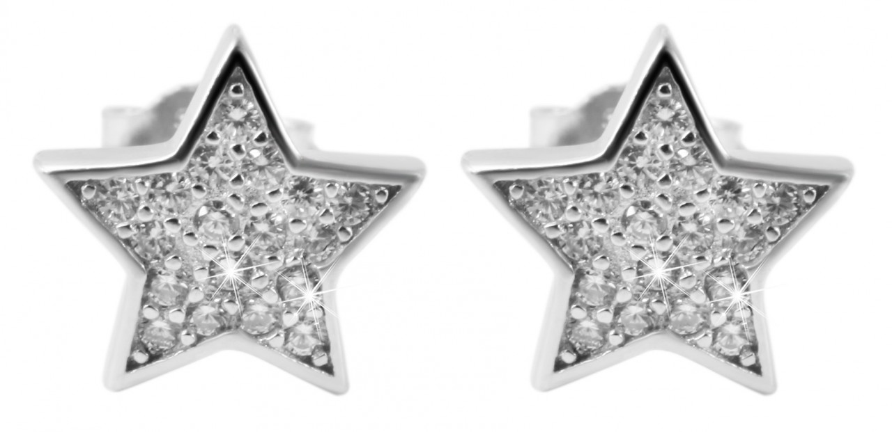 Os brincos em forma de estrela são fabricados em prata de primeira lei 925 e também são revestidos a ródio. O banho de ródio de alta qualidade protege a peça de joalharia de manchas e confere-lhe um brilho intenso e duradouro. Os brincos em forma de estrela são adornados com 18 zircónias numa cravação. A engaste cria um aspeto cintilante e confere um toque elegante a estes brincos básicos intemporais. Os brincos podem ser fixados na parte de trás do orifício da orelha com um parafuso de asa feito de prata verdadeira. O tamanho resulta de um comprimento de 9 mm, uma largura de 9 mm e uma espessura de 2 mm. Esta joia para as orelhas permite-lhe brilhar no dia a dia e é ideal para qualquer roupa e ocasião.