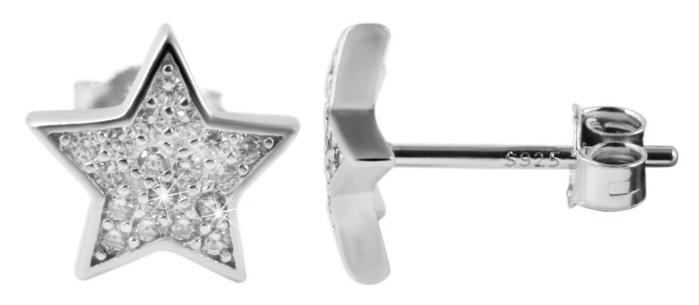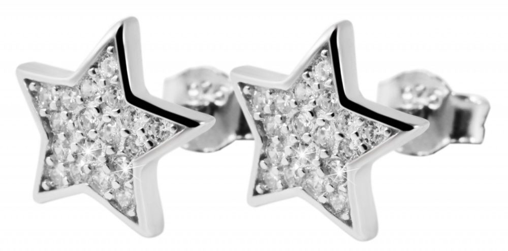 Os brincos em forma de estrela são fabricados em prata de primeira lei 925 e também são revestidos a ródio. O banho de ródio de alta qualidade protege a peça de joalharia de manchas e confere-lhe um brilho intenso e duradouro. Os brincos em forma de estrela são adornados com 18 zircónias numa cravação. A engaste cria um aspeto cintilante e confere um toque elegante a estes brincos básicos intemporais. Os brincos podem ser fixados na parte de trás do orifício da orelha com um parafuso de asa feito de prata verdadeira. O tamanho resulta de um comprimento de 9 mm, uma largura de 9 mm e uma espessura de 2 mm. Esta joia para as orelhas permite-lhe brilhar no dia a dia e é ideal para qualquer roupa e ocasião.
