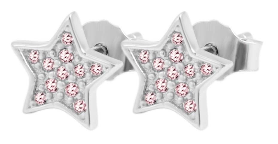 Die Ohrstecker in Form von kleinen Sternen wurden aus 925/- Sterlingsilber hergestellt und sind mit elf Zirkoniasteinen besetzt. Die liebevoll gestalteten Ohrstecker lassen sich mit einer Flügelschraube aus echtem Silber am Ohrloch sichern und haben dadurch einen angenehmen Tragekomfort. Sie sind in verschiedenen Farben erhältlich und lassen Frauenherzen höher schlagen. Die Größe ergibt sich aus einer Länge von 7 mm, einer Breite von 7 mm und einer Stärke von 1,5 mm. Dieses Produkt wird auf einem weißen Schmuckkärtchen geliefert. Es hat eine Maße von 45 x 35 mm und eignet sich ideal zum Präsentieren in dem dazu geeigneten Display oder zum Verpacken als Geschenk.