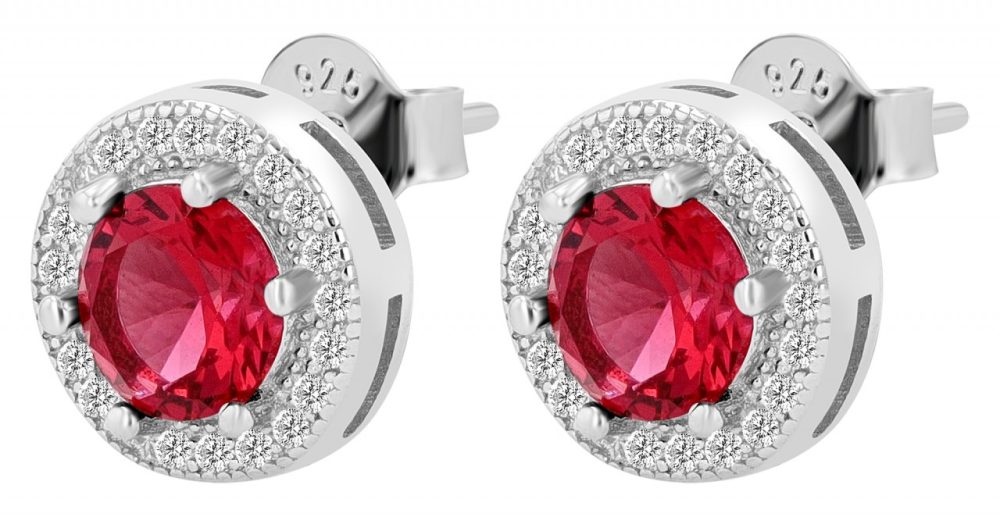 Brincos Sunja de prata de lei 925 com pedras de zircônia Vermelhas.
