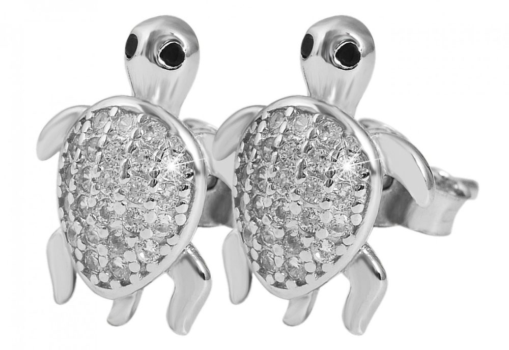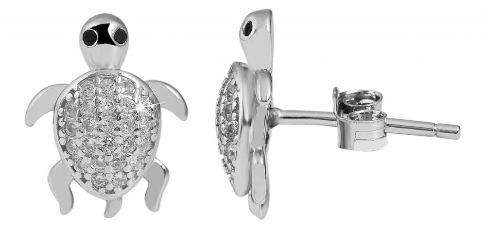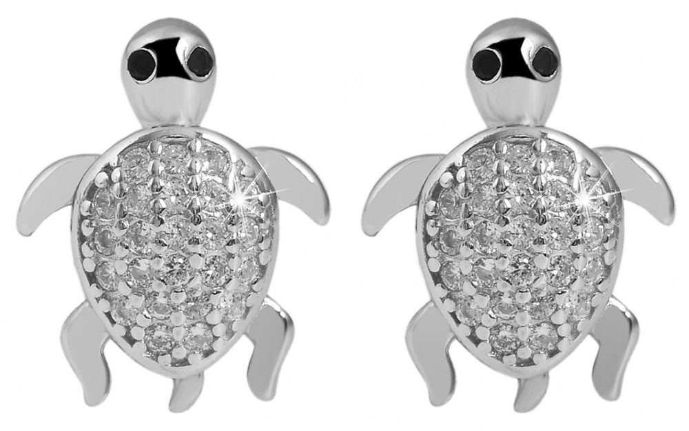 Brincos Tartaruga em Prata de Lei 925 com Zircônias e Banhados a Ródio