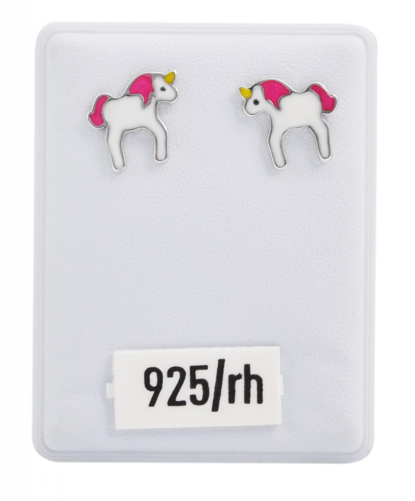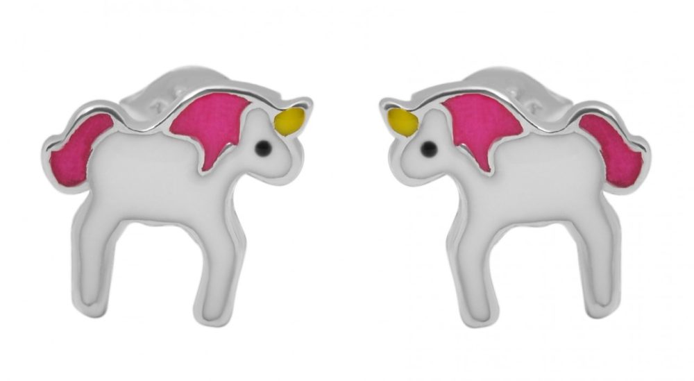 Os lindos brincos infantis em forma de unicórnio são feitos de prata esterlina 925 e também banhados a ródio. Isso significa que você pode desfrutar da joia por muito tempo, ela fica protegida de manchas e tem um brilho radiante. Os brincos são equipados com detalhes amorosos e fazem o coração das meninas bater mais rápido. Os pequenos unicórnios são preenchidos com esmalte branco, a crina e a cauda são rosadas, o chifre é amarelo. Os brincos infantis podem ser presos na parte de trás do orifício da orelha com um parafuso borboleta feito de prata verdadeira. O tamanho resulta de um comprimento de 9,5 mm, largura de 9,5 mm e espessura de 1 mm.