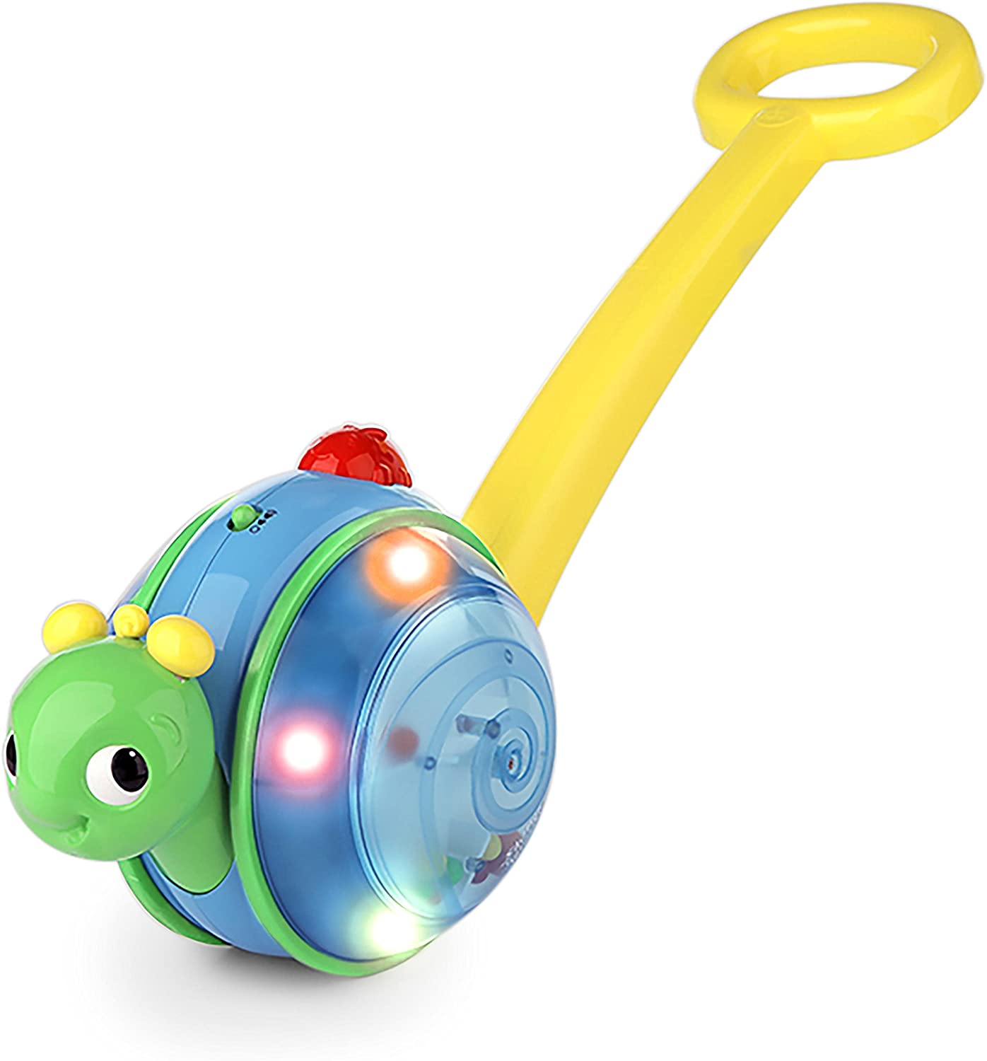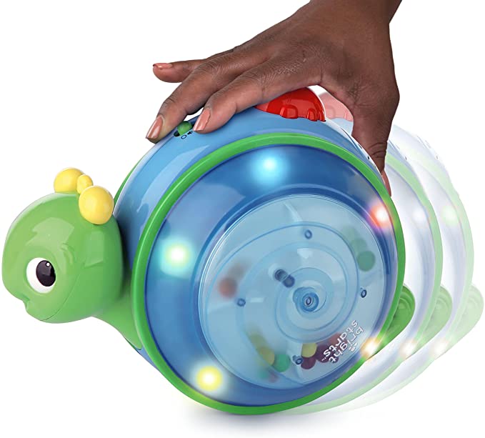 - O Roll & Glow Snail com efeitos sonoros de luzes fará com que seu bebê se mexa e esteja se divertindo muito.