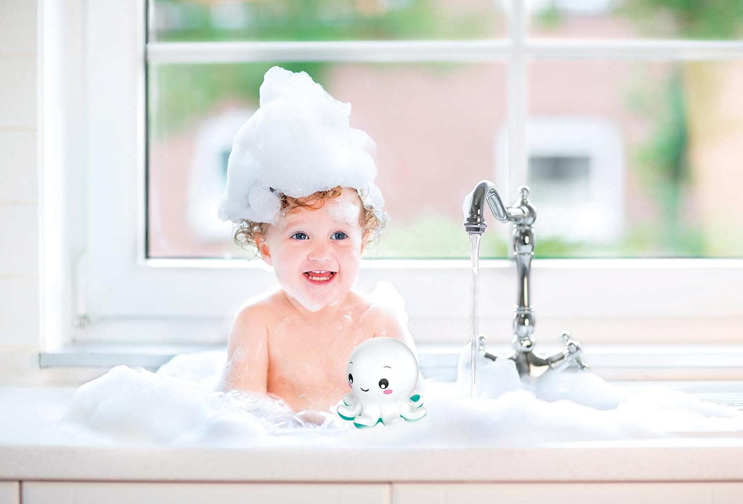 - Um polvo interativo suave para os primeiros banhos de bebé.