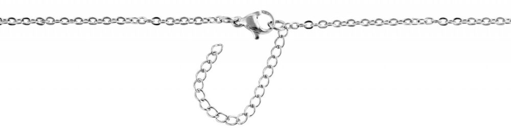 O colar com padrão de âncora da Akzent é feito de aço inoxidável e apresenta um pingente de medalhão em forma de livro. A corrente tem 45 cm de comprimento e 1 mm de espessura. Além disso, uma corrente de extensão de 5 cm de comprimento é presa à ponta da corrente. O colar pode ser aberto e fechado com um fecho de pressão de aço inoxidável. O pingente de aço inoxidável tem comprimento de 26 mm, largura de 18 mm e espessura de 4,5 mm.