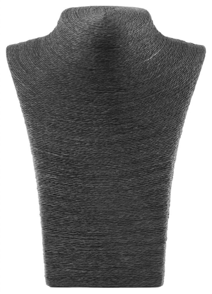 O porta-joias em formato de busto simples é feito de fibra liberiana, essas fibras garantem um visual decorativo e de alta qualidade. O busto é ideal para apresentar joias. Seja no balcão, na vitrine ou na sala de exposição, o busto tem uma bela figura em todos os lugares. As dimensões do estande são 27 cm de comprimento, 21 cm de largura e 12 cm de espessura.