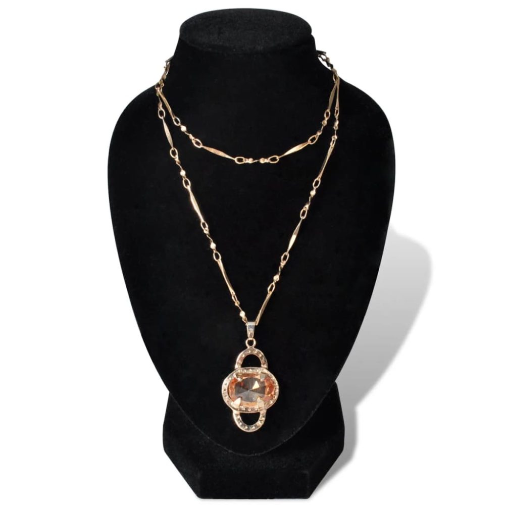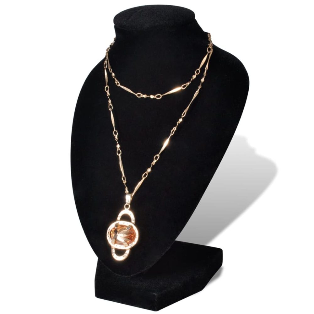 Este suporte de jóias elegante em flanela apresenta um estilo clássico e atemporal. Ele é projetado para exibir colares, brincos e correntes. A sua base de MDF durável garante a exibição de jóias, ficando estável enquanto segura as jóias.
