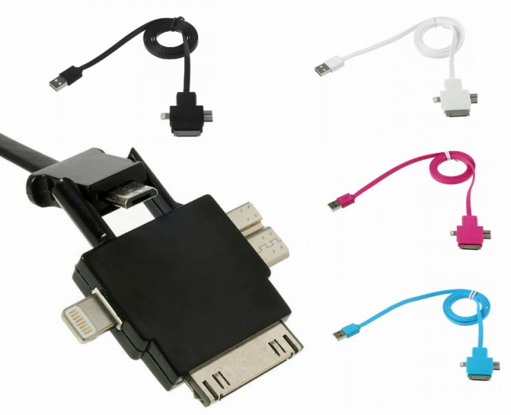 Cabo carregador multifunções 4 en 1 USB micro USB iPhone 5S / 4S Samsung S4 / S5 l Disponível em 4 cores!