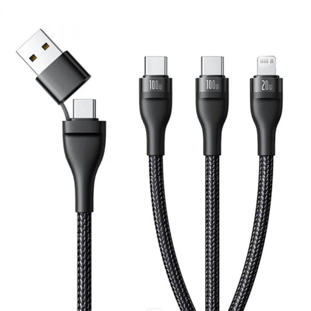 Cabo de carregamento USB-A / USB-C para Lightning / 2 x USB-C Baseus Flash Series III 3 em 1, 100 W, 5 A, 1,5 m, preto P10377800U01-00
