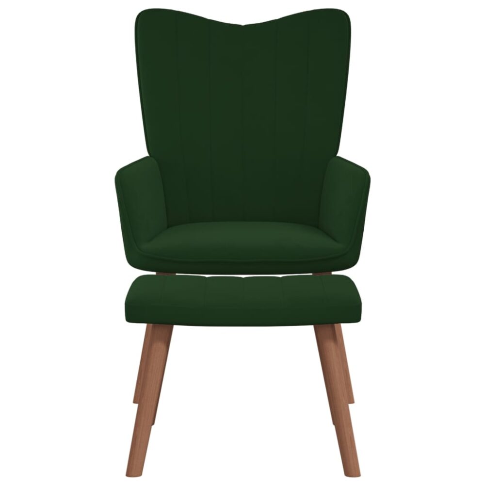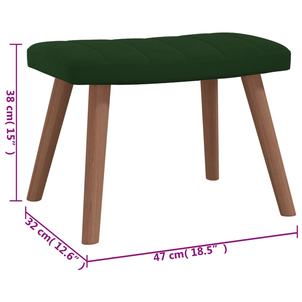 Esta cadeira de descanso com um banco é um excelente complemento para a decoração da sua casa. Esta cadeira com apoio de braços possui algumas linhas no encosto e é esteticamente apelativa. Graças ao seu enchimento de espuma e estofamento em veludo macio ao toque, poderá desfrutar de um ótimo conforto durante o tempo que estiver sentado. Suportada por uma estrutura de aço e pernas em madeira, a cadeira de descanso com um banco é estável e durável. Máximo de 110 kg por assento. Ter em atenção o risco de fogos abertos e outras fontes de calor forte nas proximidades do produto.