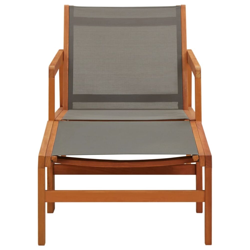 Esta cadeira de jardim é feita em madeira de eucalipto maciça com acabamento a óleo natural, sendo resistente às intempéries e altamente durável. É bastante adequada para utilização no exterior. Esta cadeira foi concebida com tecido de textilene forte e respirável, proporcionando-lhe o máximo conforto no seu tempo de descanso. O apoio de pés integrado permite-lhe descansar os seus pés e ter assim um apoio adicional. Também é fácil de limpar e cuidar.