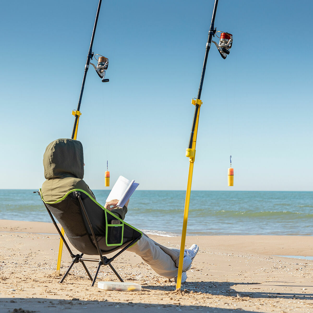 - Design ergonómico e respirável: a nossa cadeira de campismo com saco de transporte é perfeita para se sentar e descansar tranquilamente, desfrutando da paisagem ao ar livre. O assento ergonómico de poliéster tem zonas de rede respirável com orifícios de ventilação que aliviam o calor no verão.
