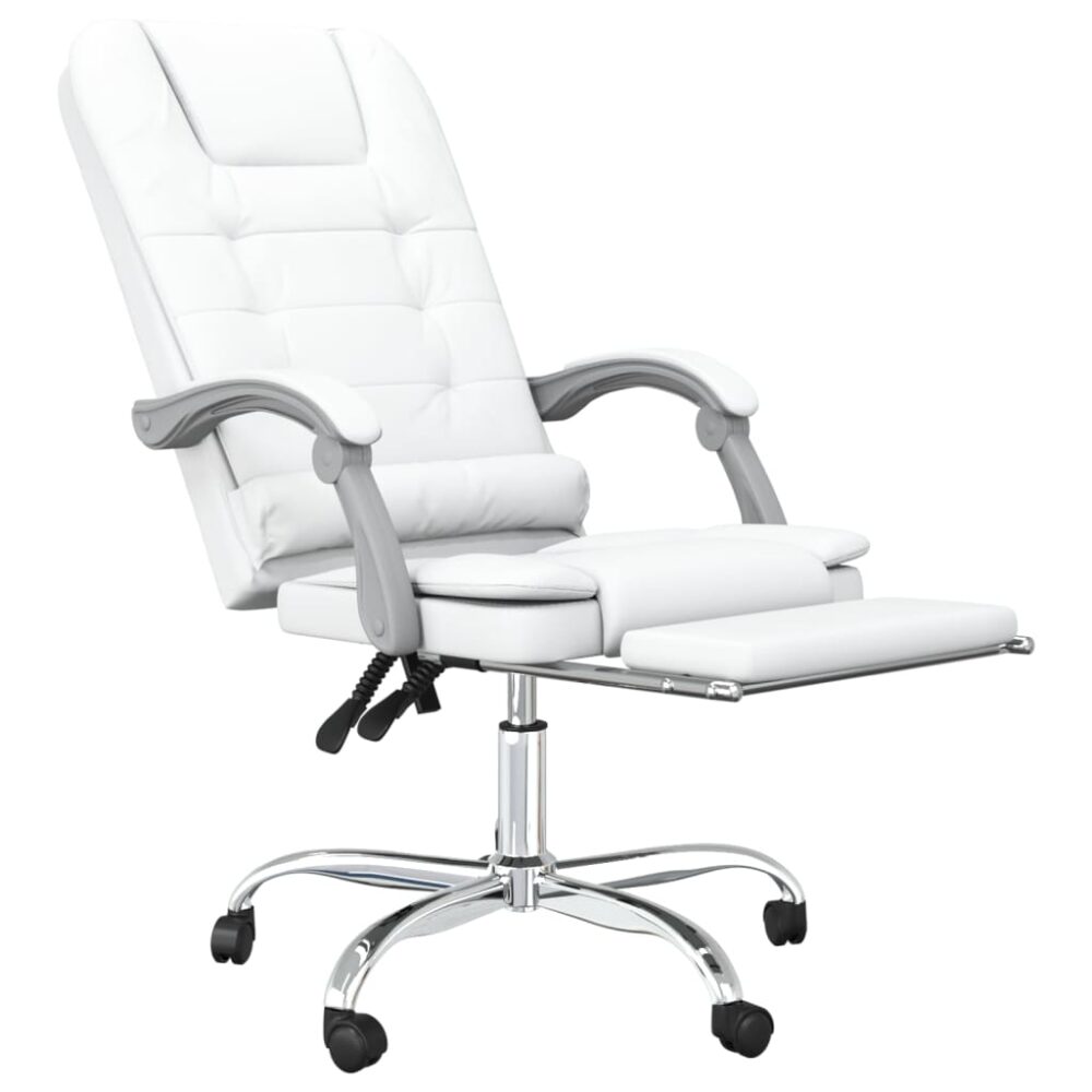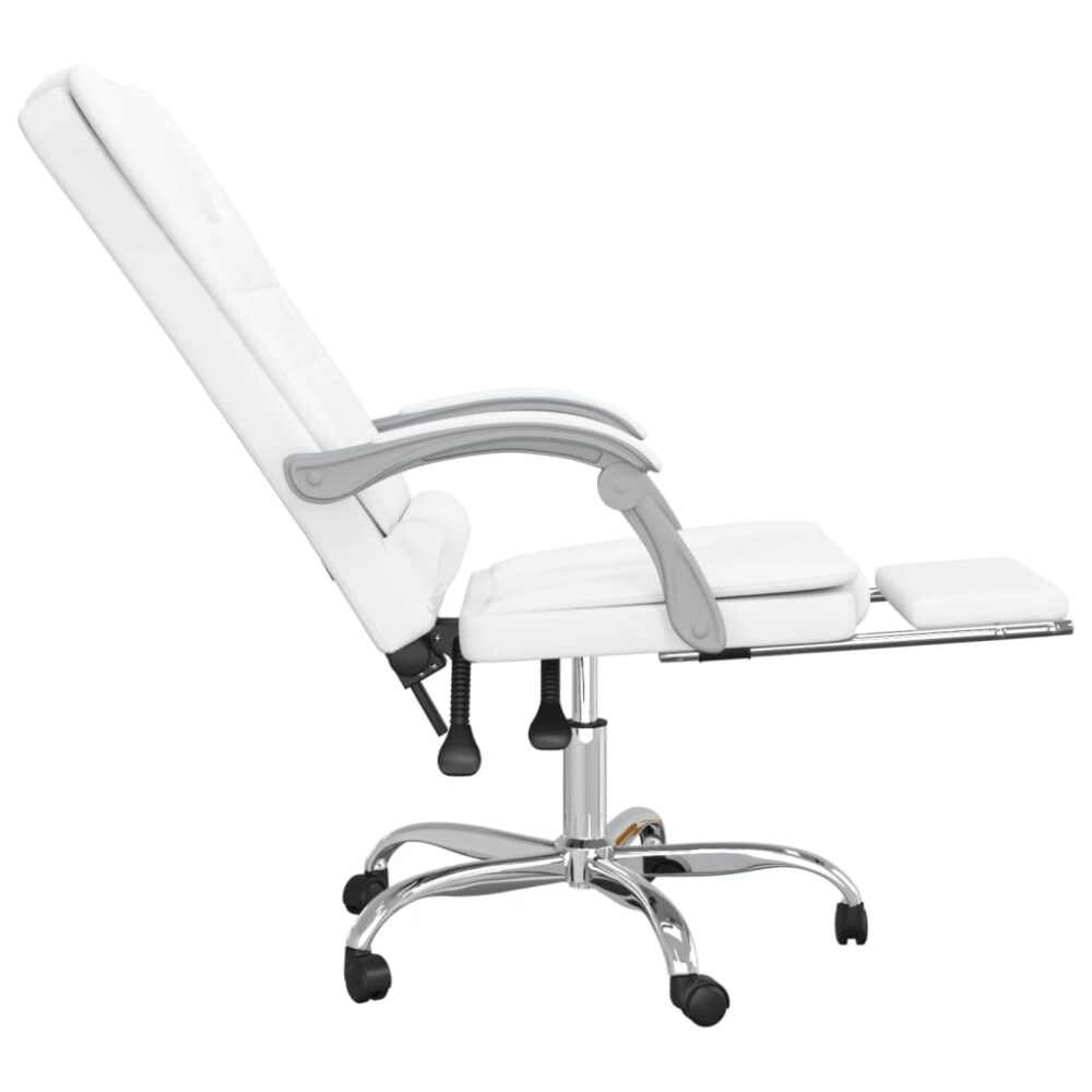 Com um design minimalista, esta moderna cadeira de massagens de escritório reclinável combina elegância e conforto, tornando-a um destaque no seu espaço de trabalho. Couro artificial durável: o couro artificial de alta qualidade é um material altamente durável. É resistente a manchas, sendo fácil de limpar com um pano húmido. A superfície suave concede-lhe também um aspeto luxuoso e a beleza do couro genuíno.Função de massagem: o ponto de massagem no encosto alivia eficazmente o seu cansaço e torna-o mais relaxado no trabalho.Encosto e altura ajustáveis: foi especialmente concebida com uma função de reclinação, de modo a que possa ajustar o encosto e o apoio para os pés de acordo com as suas necessidades de conforto. Use a alavanca para ajustar a altura do assento de acordo com a sua preferência.Design conveniente: o design giratório de 360 graus permite uma maior variedade de movimentos. As rodas permitem ainda uma deslocação conveniente.Estrutura robusta e estável: as estruturas de metal e contraplacado asseguram resistência e estabilidade. Útil saber:Cada produto é fornecido com um manual de instruções na caixa para facilitar a montagem.O produto possui um conetor USB, mas a fonte de alimentação USB de 5 V certificada não está incluída. Ter em atenção o risco de fogos abertos e outras fontes de calor forte nas proximidades do produto. Máximo de 110 kg por assento. Este produto é alimentado por CC 5V, mas a fonte de alimentação USB de 5V certificada não está incluída. Uma tensão mais elevada pode provocar um sobreaquecimento e resultar em danos no dispositivo e no risco potencial de sobreaquecimento e incêndio.