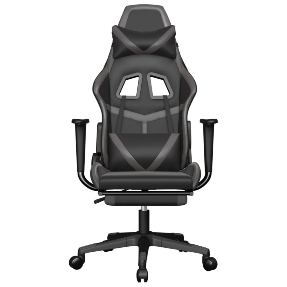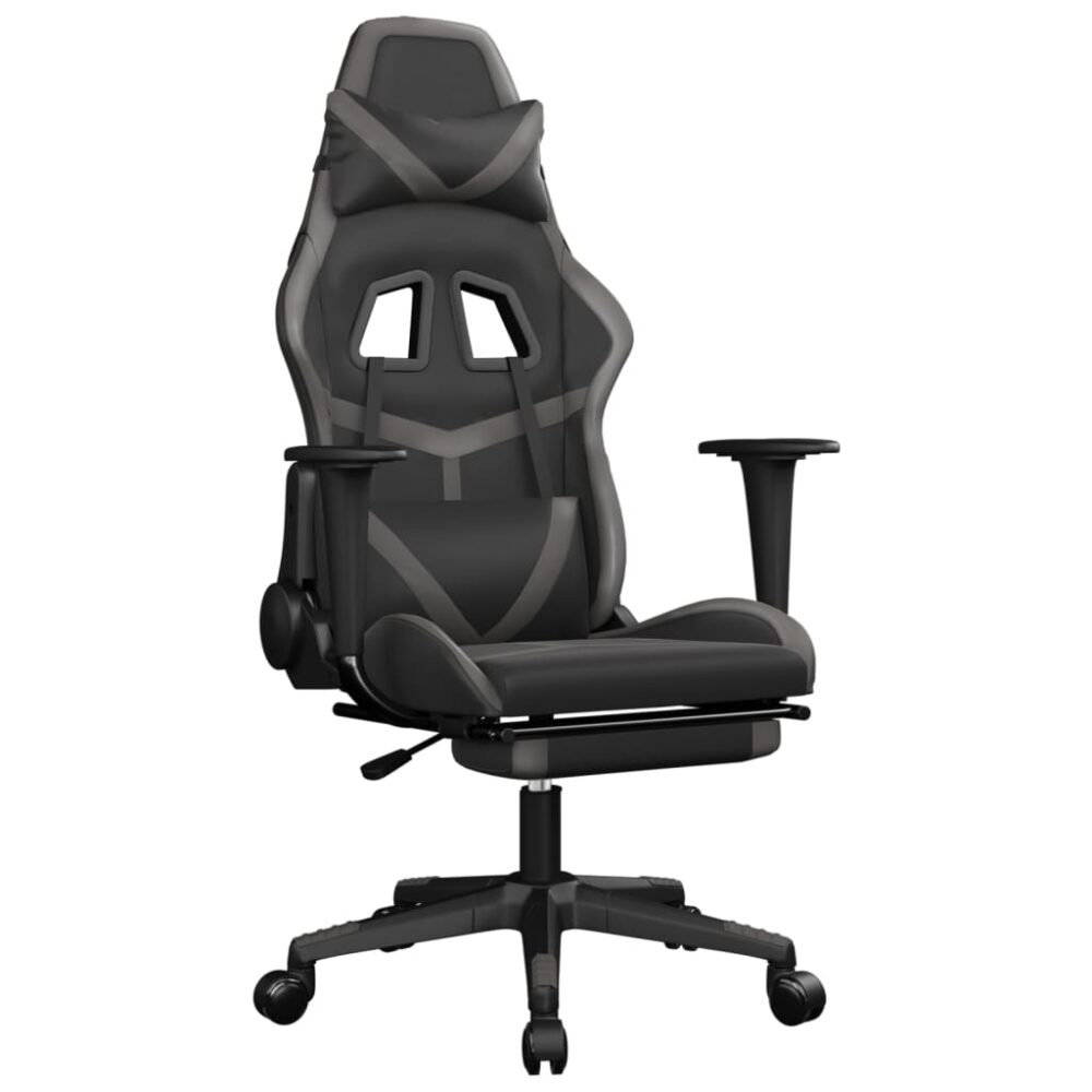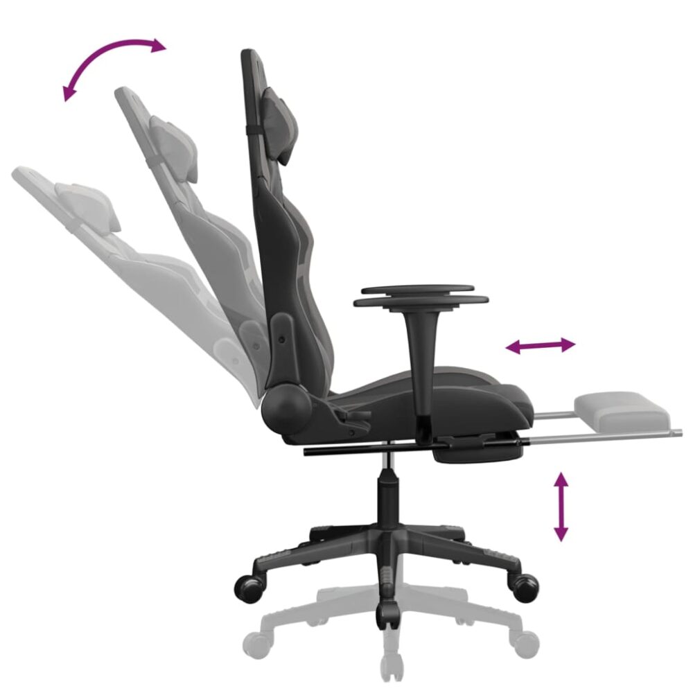 Cadeira gaming c/ apoio pés couro artificial preto e cinza - PORTES GRÁTIS