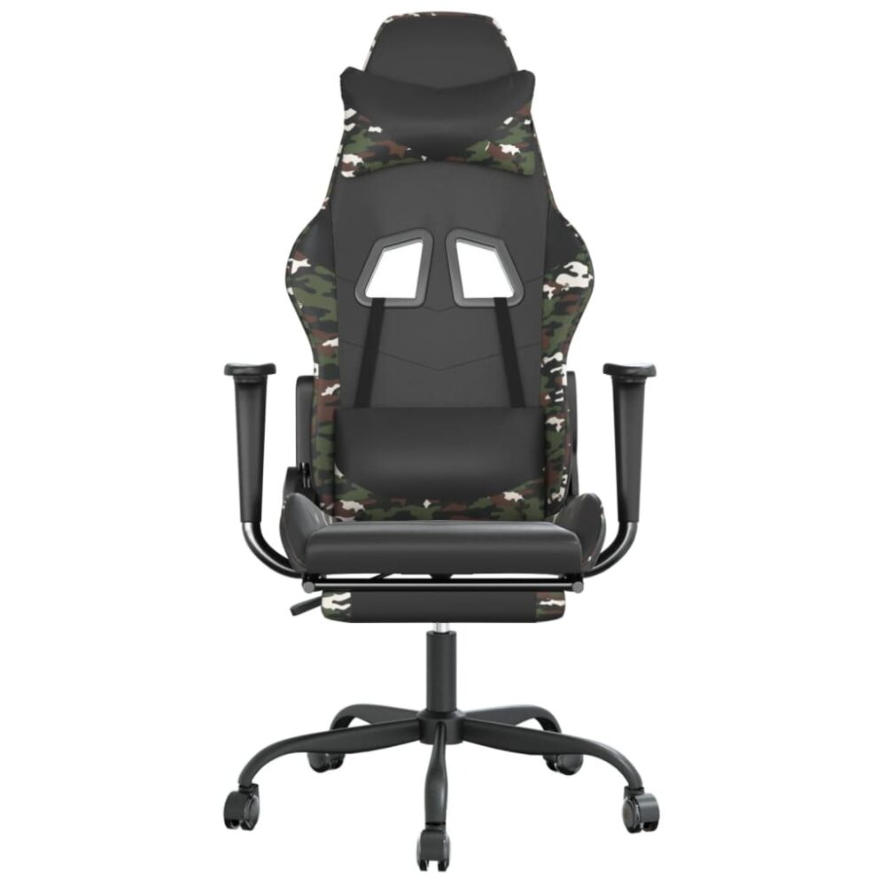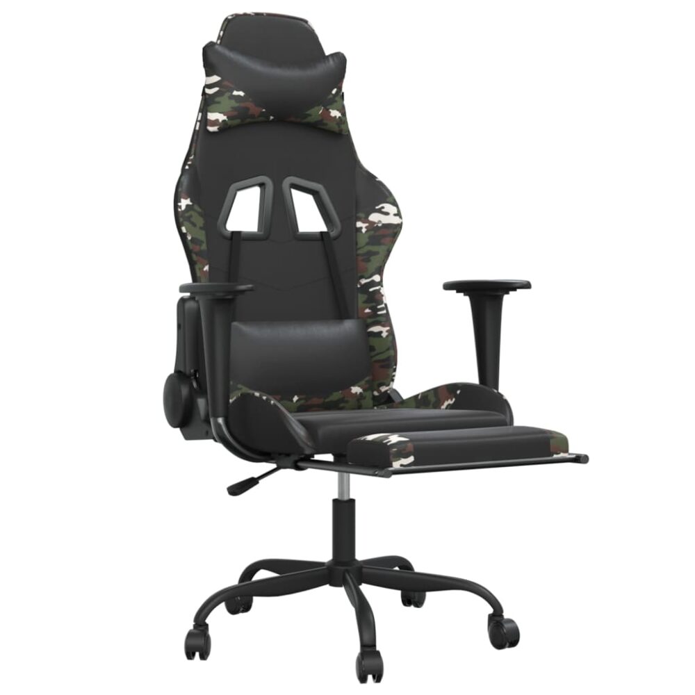 Cadeira gaming massagens apoio pés couro artif preto/camuflagem - PORTES GRÁTIS