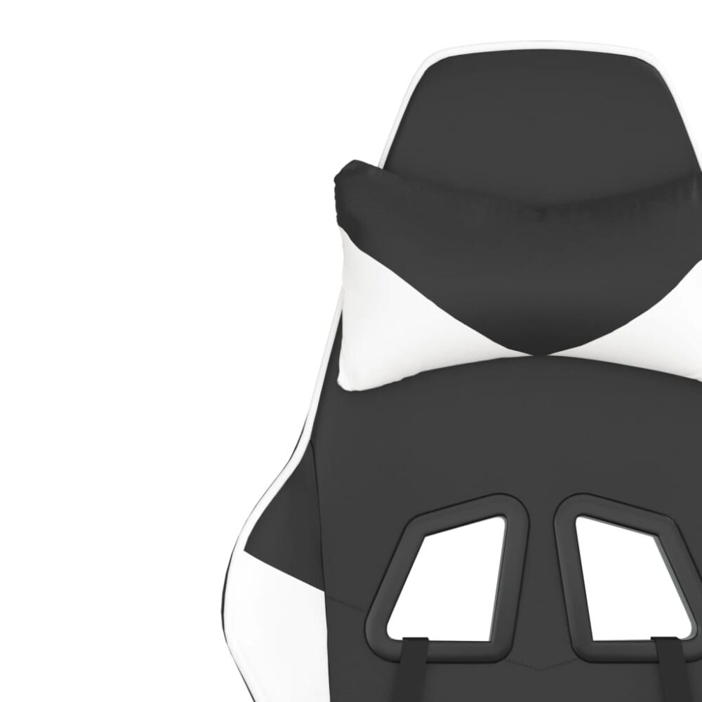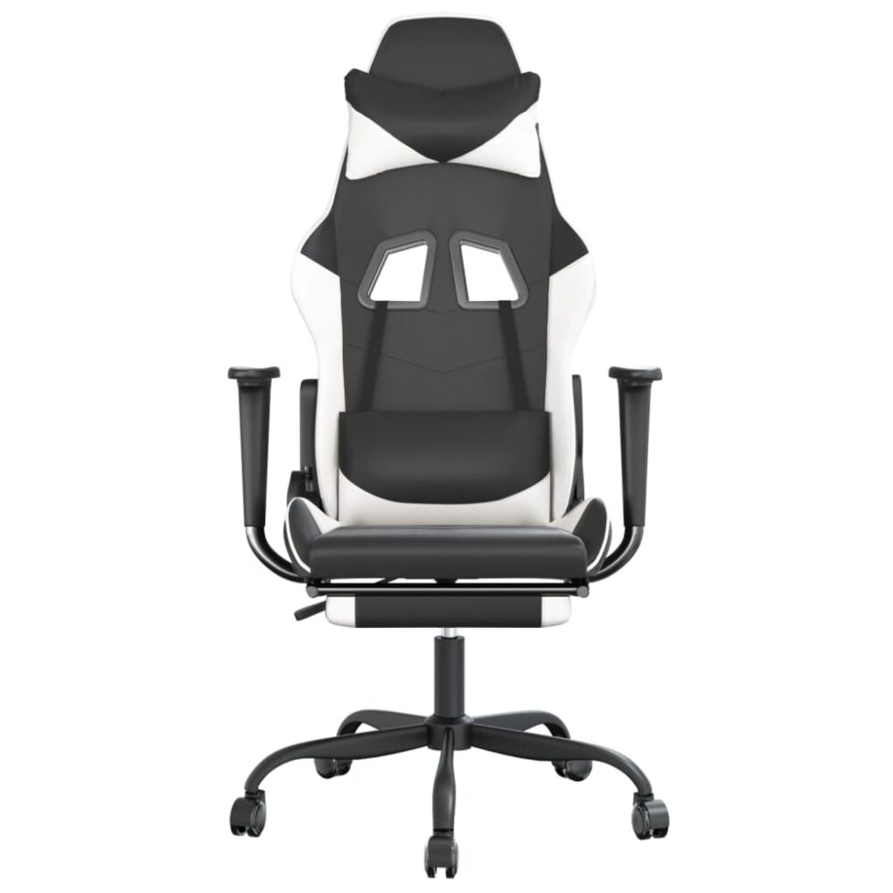 Cadeira gaming massagens c/ apoio pés couro artif. preto/branco - PORTES GRÁTIS