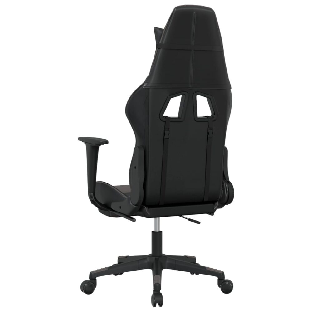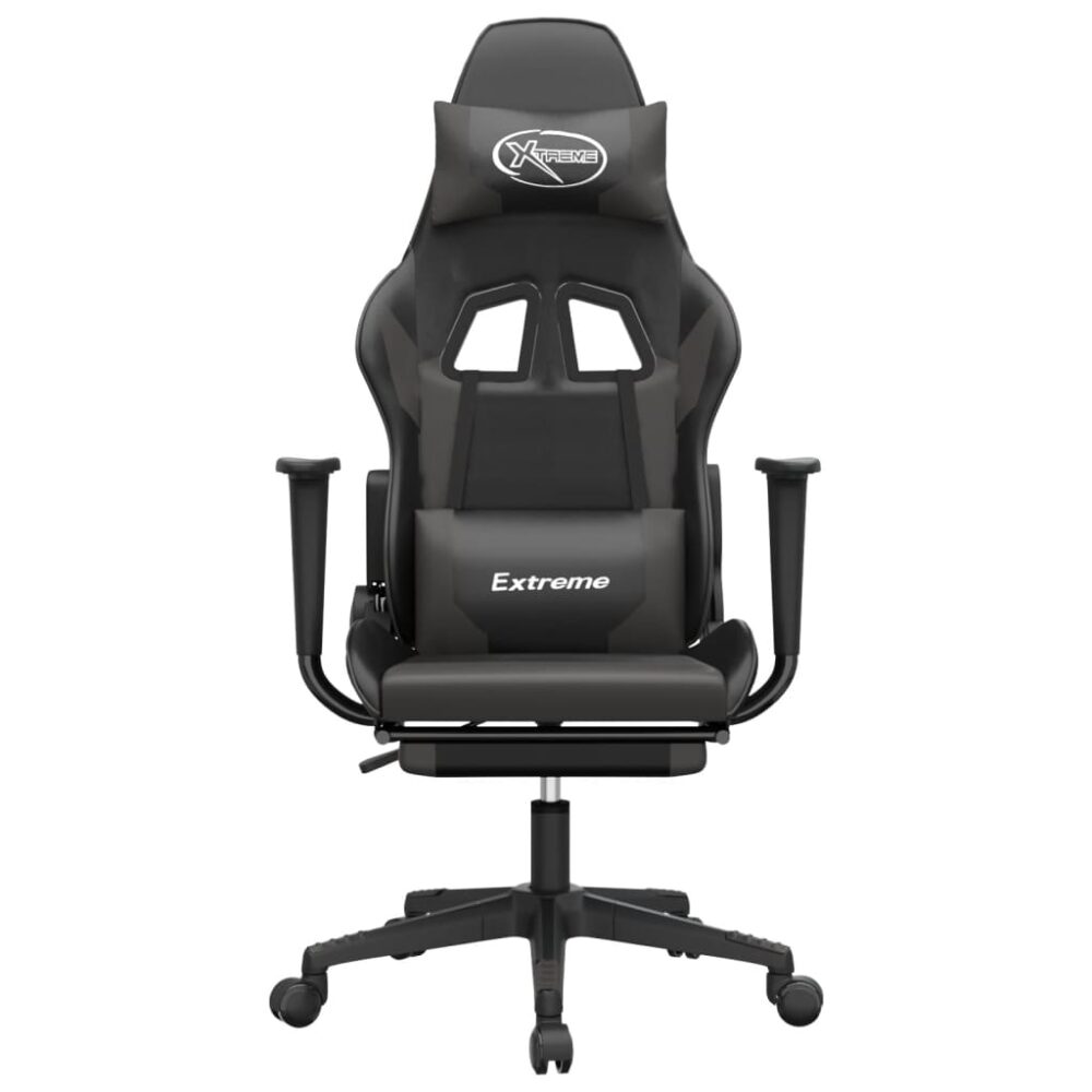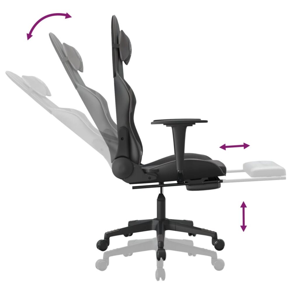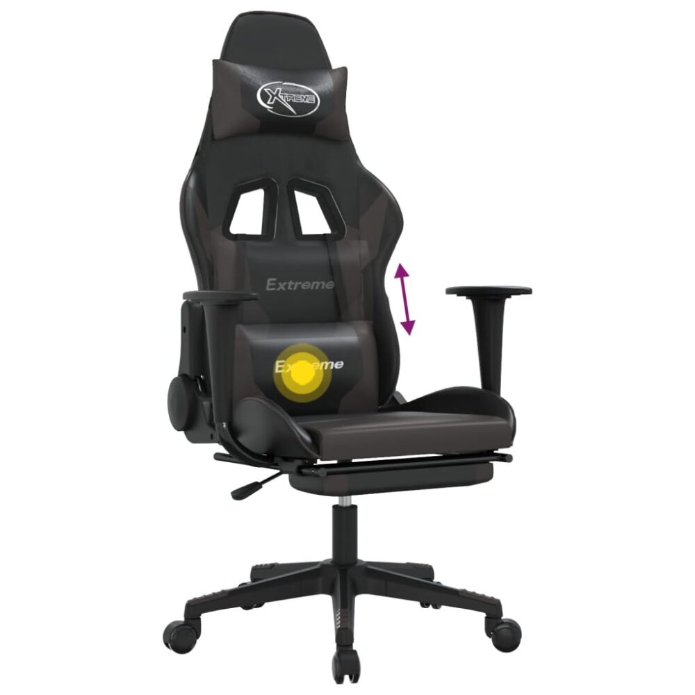 Aprecie sentar-se nesta cadeira de gaming única e melhore a sua experiência enquanto joga com conforto! Couro artificial durável: o couro artificial de alta qualidade é um material altamente durável. É resistente a manchas, sendo fácil de limpar com um pano húmido. A superfície suave concede-lhe também um aspeto luxuoso e a beleza do couro genuíno.Função de massagem: o ponto de massagem na almofada da cintura alivia eficazmente o seu cansaço e torna-o mais relaxado no trabalho.Encosto e altura ajustáveis: foi especialmente concebida com uma função de reclinação, de modo a que possa ajustar o encosto e o apoio para os pés de acordo com as suas necessidades de conforto. Use a alavanca para ajustar a altura do assento de acordo com a sua preferência.Design conveniente: o design giratório de 360 graus permite uma maior variedade de movimentos. As rodas permitem ainda uma deslocação conveniente.Estrutura robusta e estável: as estruturas de metal e contraplacado asseguram resistência e estabilidade. Nota:Cada produto é fornecido com um manual de instruções na caixa para facilitar a montagem.Adaptador USB não incluído.