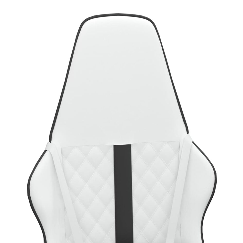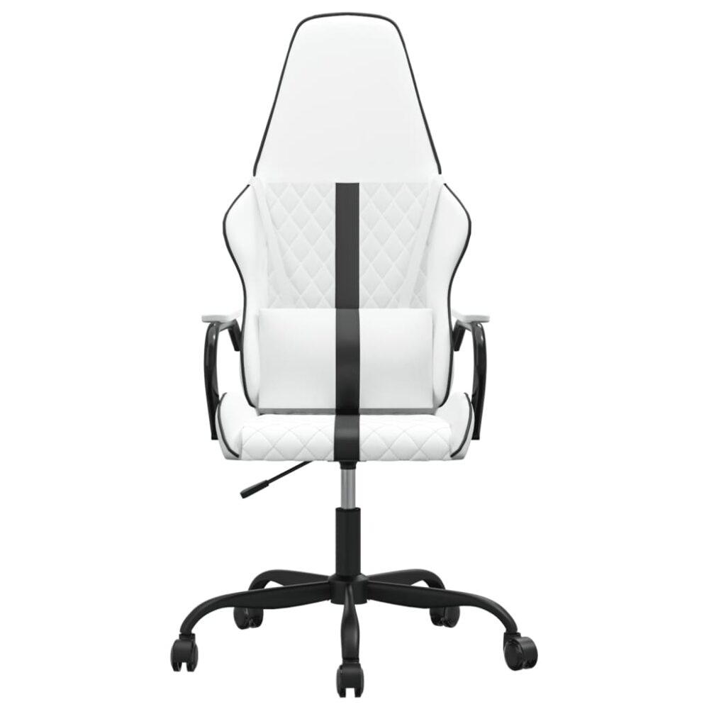 Aprecie sentar-se nesta cadeira de gaming e melhore a sua experiência enquanto joga com conforto! Couro artificial durável: o couro artificial de alta qualidade é um material altamente durável. É resistente a manchas, sendo fácil de limpar com um pano húmido. A superfície suave concede-lhe também um aspeto luxuoso e a beleza do couro genuíno.Função de massagem: o ponto de massagem na almofada da cintura alivia eficazmente o seu cansaço e torna-o mais relaxado no trabalho.Altura ajustável: utilize a alavanca para ajustar a altura do assento de acordo com a sua preferência.Design conveniente: o design giratório a 360 graus permite uma maior variedade de movimentos. As rodas permitem ainda uma deslocação conveniente.Estrutura robusta e estável: as estruturas de metal e contraplacado asseguram resistência e estabilidade. Útil saber:O produto possui um conetor USB, mas a fonte de alimentação USB de 5 V certificada não está incluída.