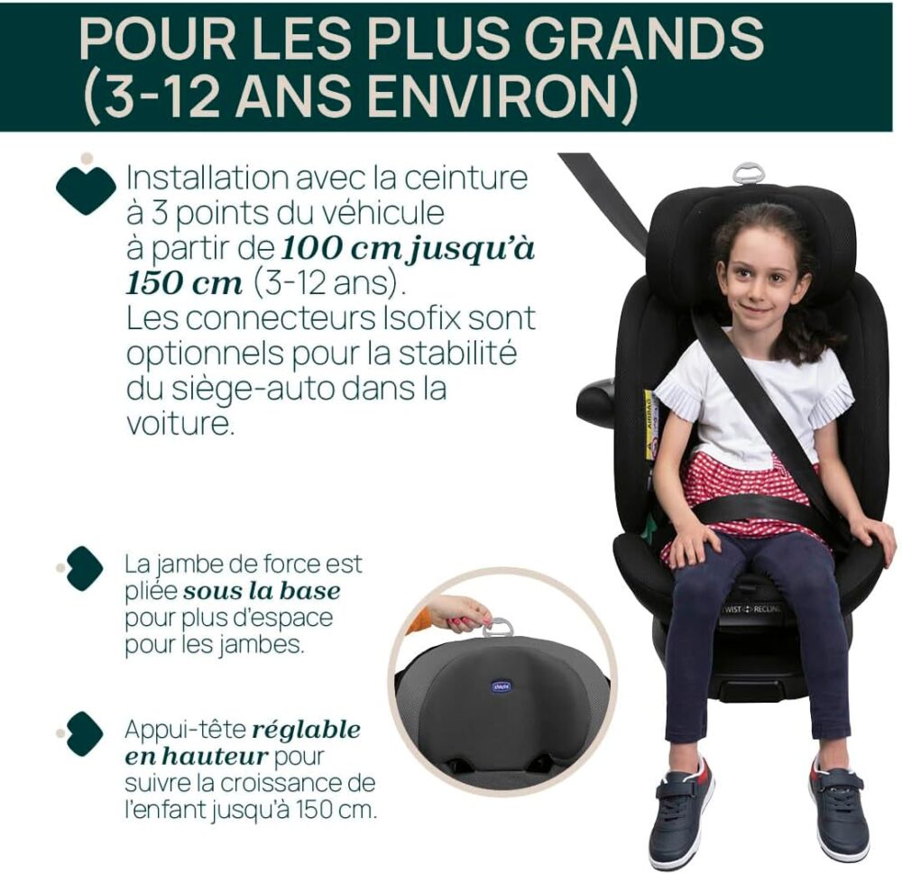 • Esta cadeira destaca-se especialmente pela sua funcionalidade giratória, que facilita muito a colocação e retirada da criança, reduzindo o desconforto para os pais e tornando a instalação no veículo mais segura.