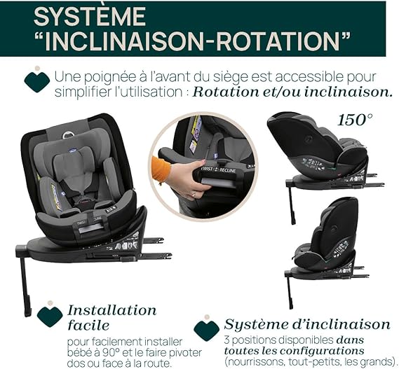 • Esta cadeira para carro representa uma solução prática e segura na mobilidade infantil, onde a tecnologia de rotação e reclinação se une a uma certificação atualizada para oferecer confiança e conforto em cada trajeto.
