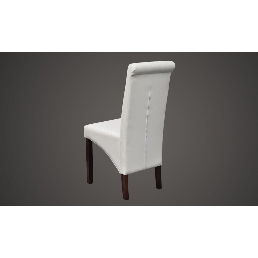 Este conjunto de 4 cadeiras de jantar grandes e confortáveis tem um design antigo e assentos e encostos ergonómicos. As pernas são feitas em madeira envernizada maciça na cor castanho-escuro e os cantos são arredondados para maior segurança. As cadeiras podem ser facilmente mantidas e limpas. Os assentos e encostos das cadeiras de jantar estão acolchoados com couro artificial durável.
