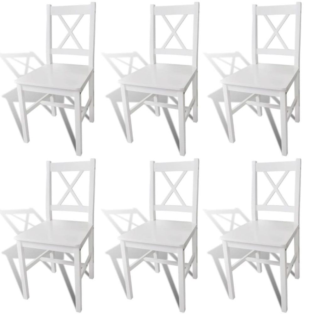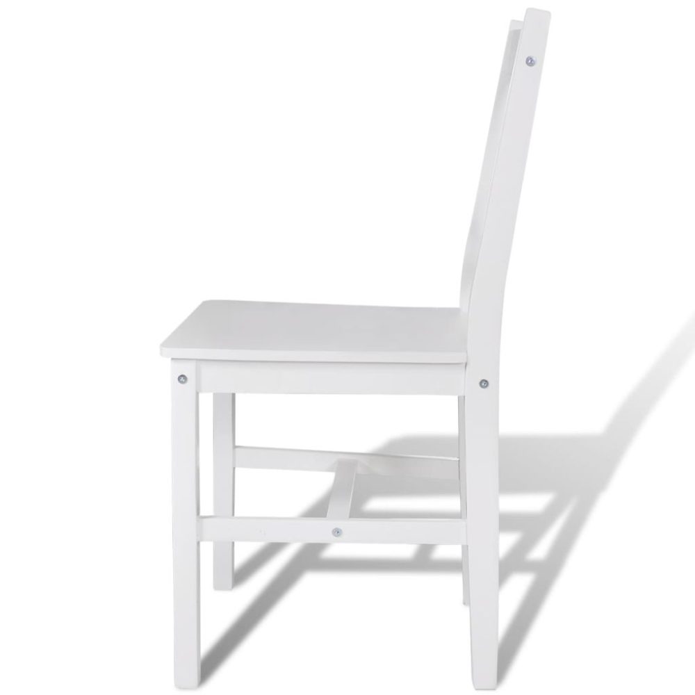 As cadeiras são feitas de madeira de pinho sólida, o que as torna muito estáveis e duráveis. As cadeiras de jantar também são fáceis de limpar graças ao acabamento de tinta lisa. Foram concebidas ergonomicamente para maior conforto.