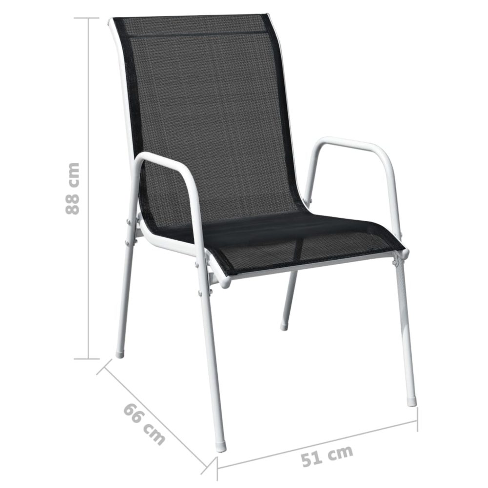 As confortáveis cadeiras com apoios de braços foram construídas em aço revestido a pó, tornando-as robustas e estáveis. Graças ao textilene forte, estas cadeiras de exterior são resistentes às intempéries e fáceis de limpar. As cadeiras também podem ser empilhadas para economizar espaço quando não estiverem a ser utilizadas. Relaxe enquanto desfruta do seu espaço ao ar livre nestas cadeiras de jantar confortáveis e duráveis!