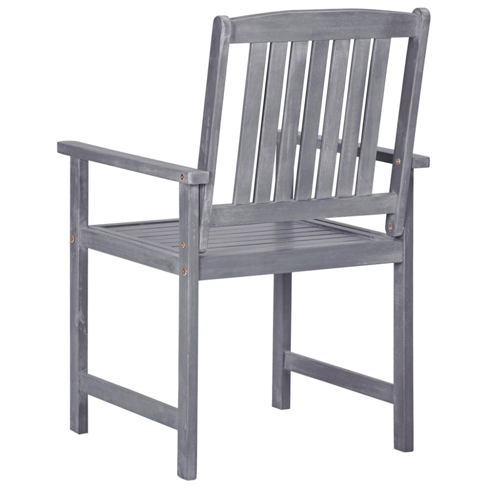Este conjunto de cadeiras de jardim é feito em madeira de acácia maciça, uma madeira dura com veios densos, e possui um acabamento a cinzento lavado. A madeira de acácia maciça possui força para suportar o peso bem como o desgaste causado pelo tempo. Este conjunto de cadeiras em madeira é estável, durável e resistente às condições climatéricas. As pernas de madeira também garantem uma excelente estabilidade. A superfície da cadeira é fácil de limpar com um pano húmido.