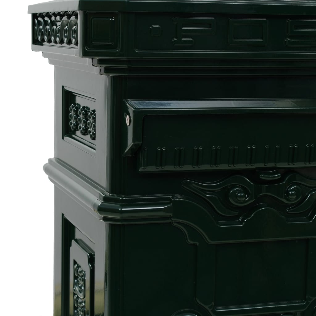 Esta caixa de correio foi concebida com uma larga ranhura para o correio e possui uma aba para proteger o conteúdo das intempéries e duas portas bloqueáveis (2 chaves incluídas para cada porta) para poder tirar facilmente a correspondência. A caixa de correio é feita em alumínio fundido resistente às intempéries e à prova de ferrugem, o que a torna muito adequada para utilização no exterior. Está adornada com uma abundância de requintados detalhes decorativos em estilo vintage e tornar-se-à um verdadeiro atrativo no seu caminho de acesso ou entrada.