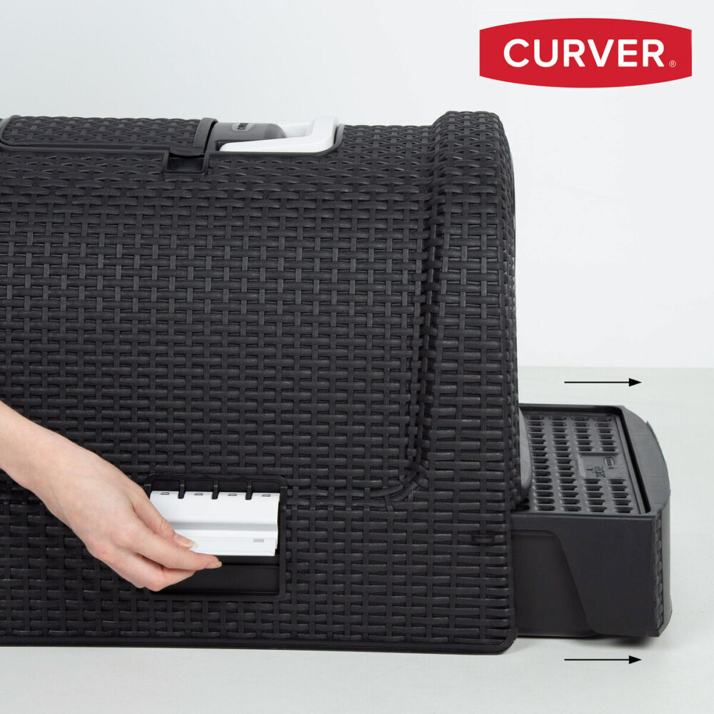 Esta caixa de areia para gatos coberta, da Curver, tem um design maravilhoso e será a escolha perfeita para o seu gato. Esta caixa de areia é feita de vime de plástico muito forte e de alta qualidade. Possui uma gaveta muito conveniente, que facilita esvaziar e verificar se precisa de ser limpa. A gaveta está equipada com uma bandeja com orifícios para manter os excrementos fora da caixa de areia, por isso mantém-se fresca por mais tempo. Combinando um design elegante com recursos práticos, esta luxuosa caixa de areia ficará ótima em qualquer decoração.